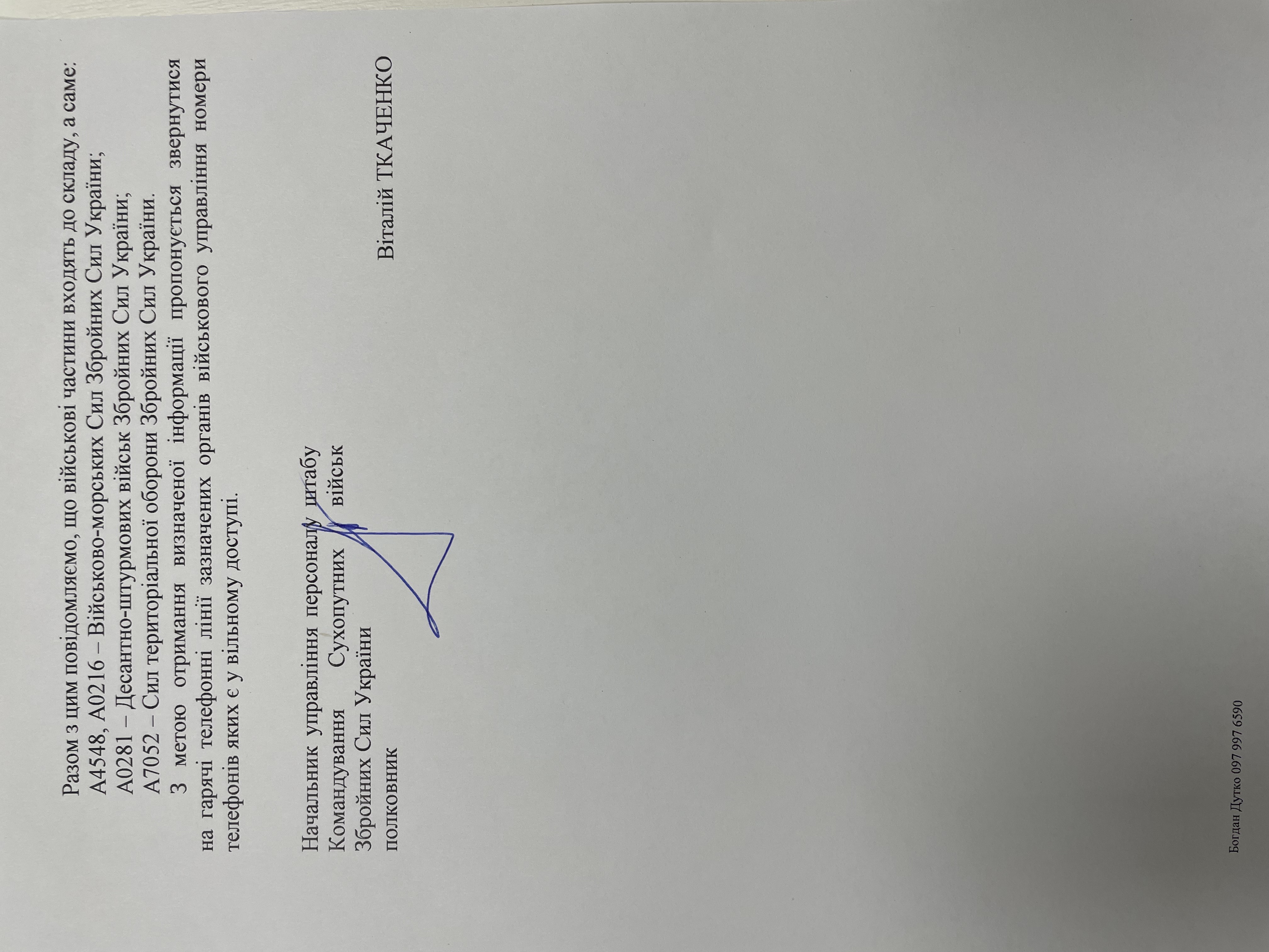 Адреса військової частини: А5001, А0501, А4548, А4447, А7052, А4860, А0216, А4784 А0281