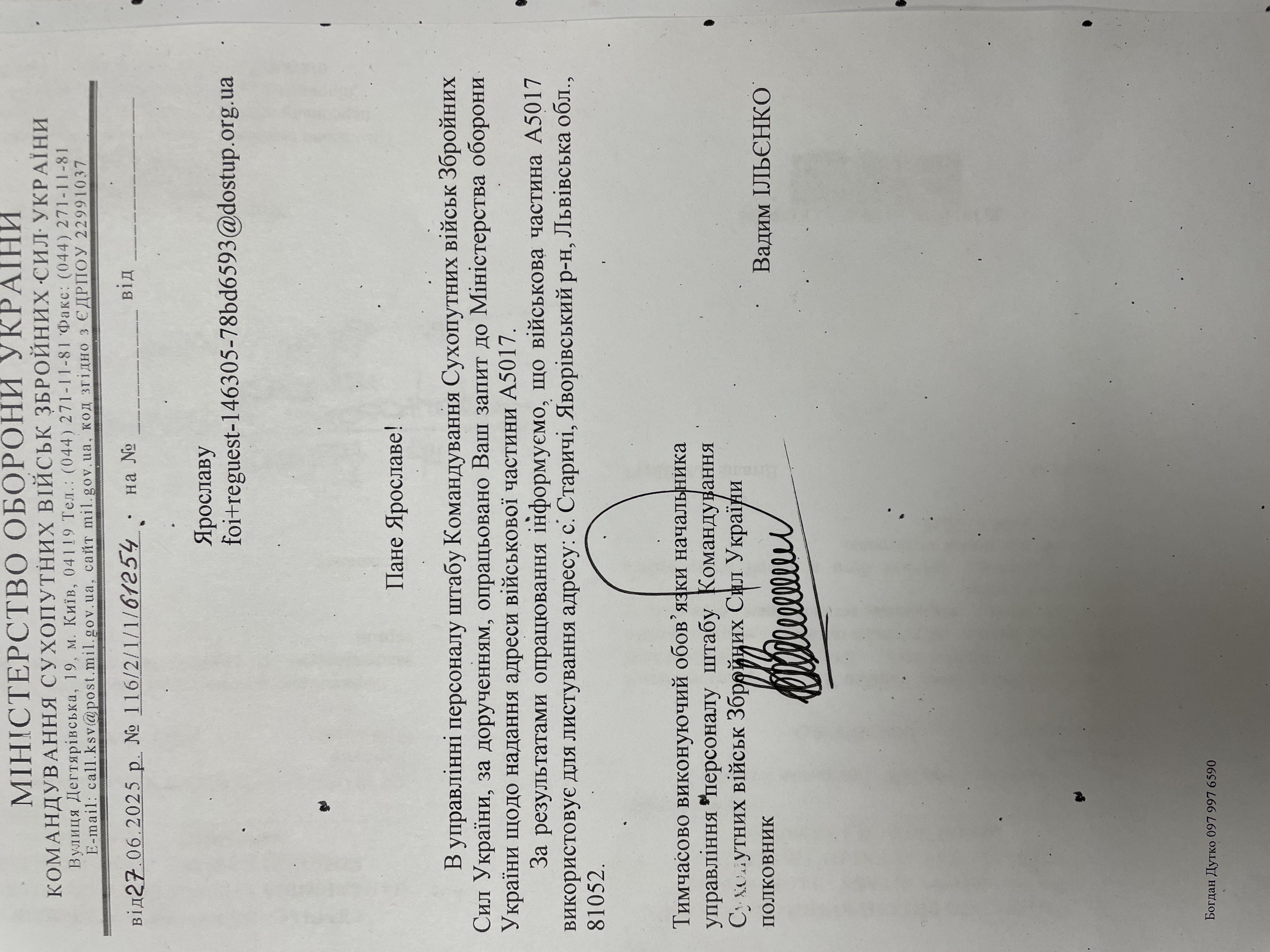 адресу в.ч. А5017, нам треба подати рапорт на частину. Чи є у вас адреса