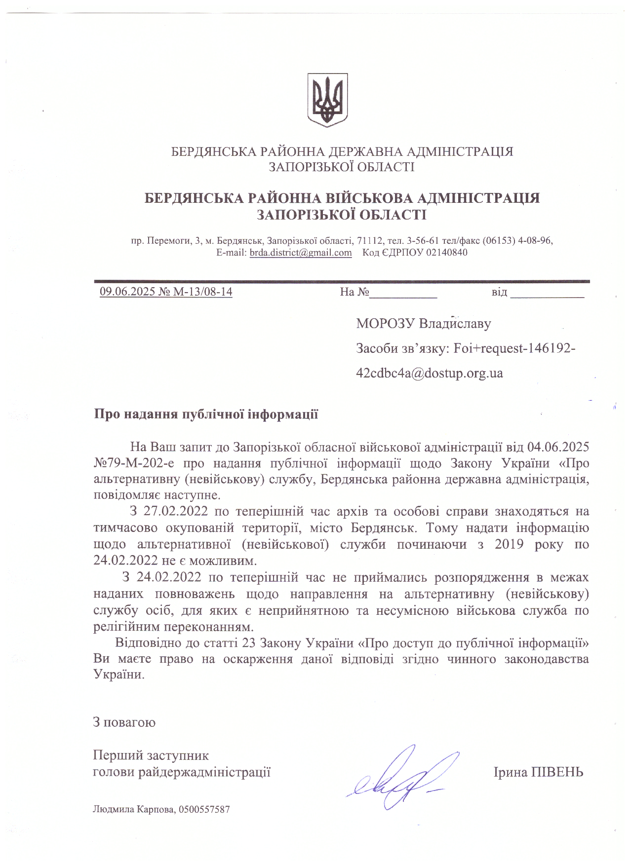 З повагою, сектор з питань розгляду звернень громадян апарату Броварської