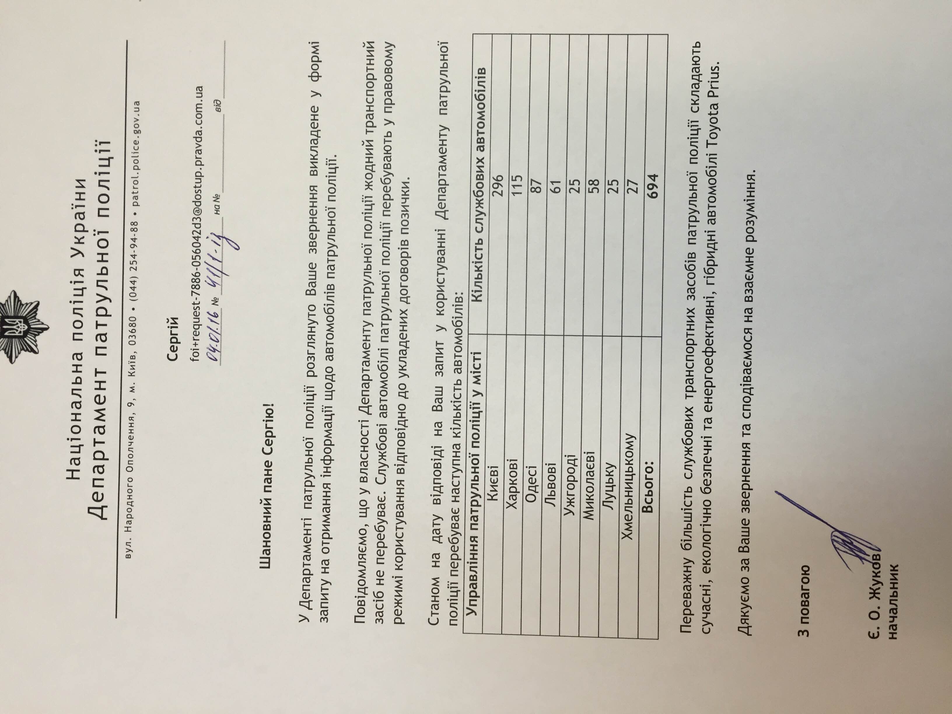 № 20917/0/2-15 надіслано до МВС та Національної поліції для розгляду та надання Вам інформації в установленому порядку.