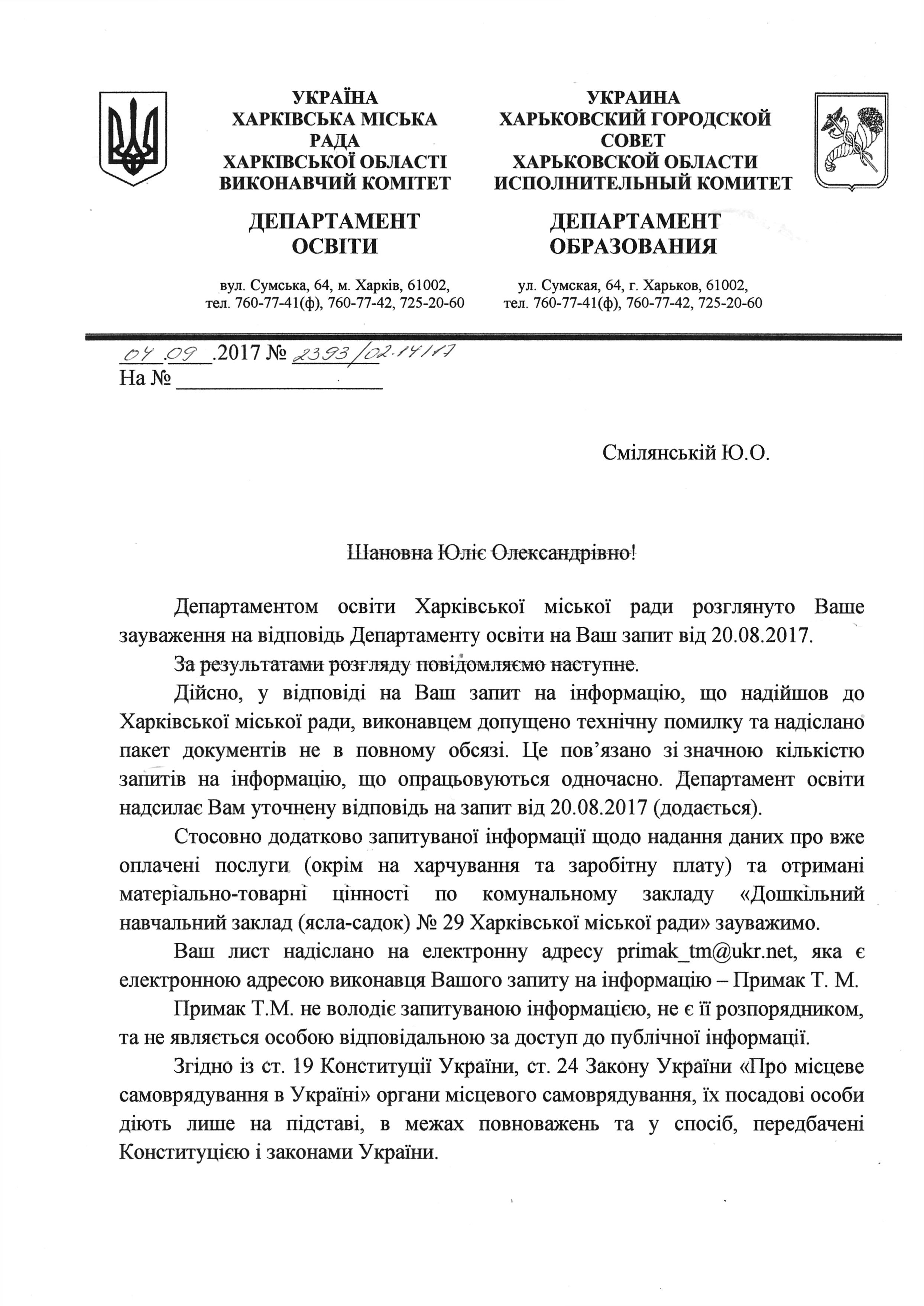Також прошу надати інформацію про вже оплачені послуги (окрім комунальних, видатків на харчування та заробітну плату) та отримані МТЦ ДНЗ№29 за січень-серпень 2017 р. у будь якому вигляді.