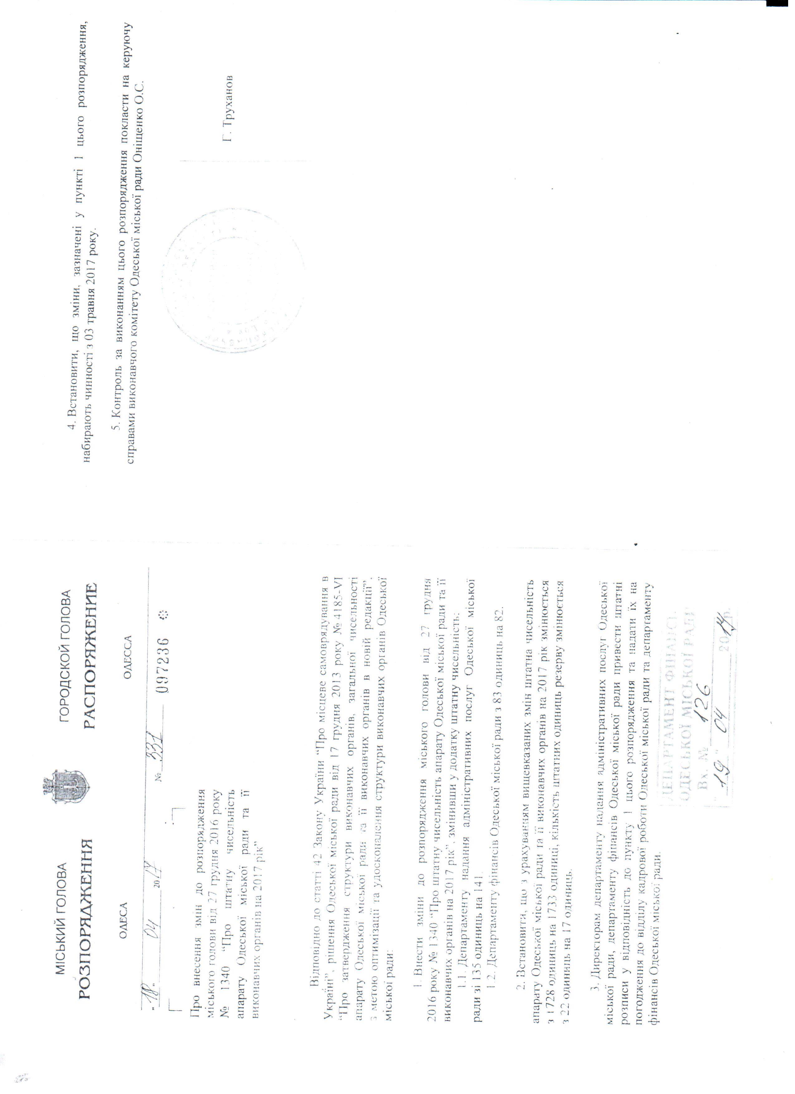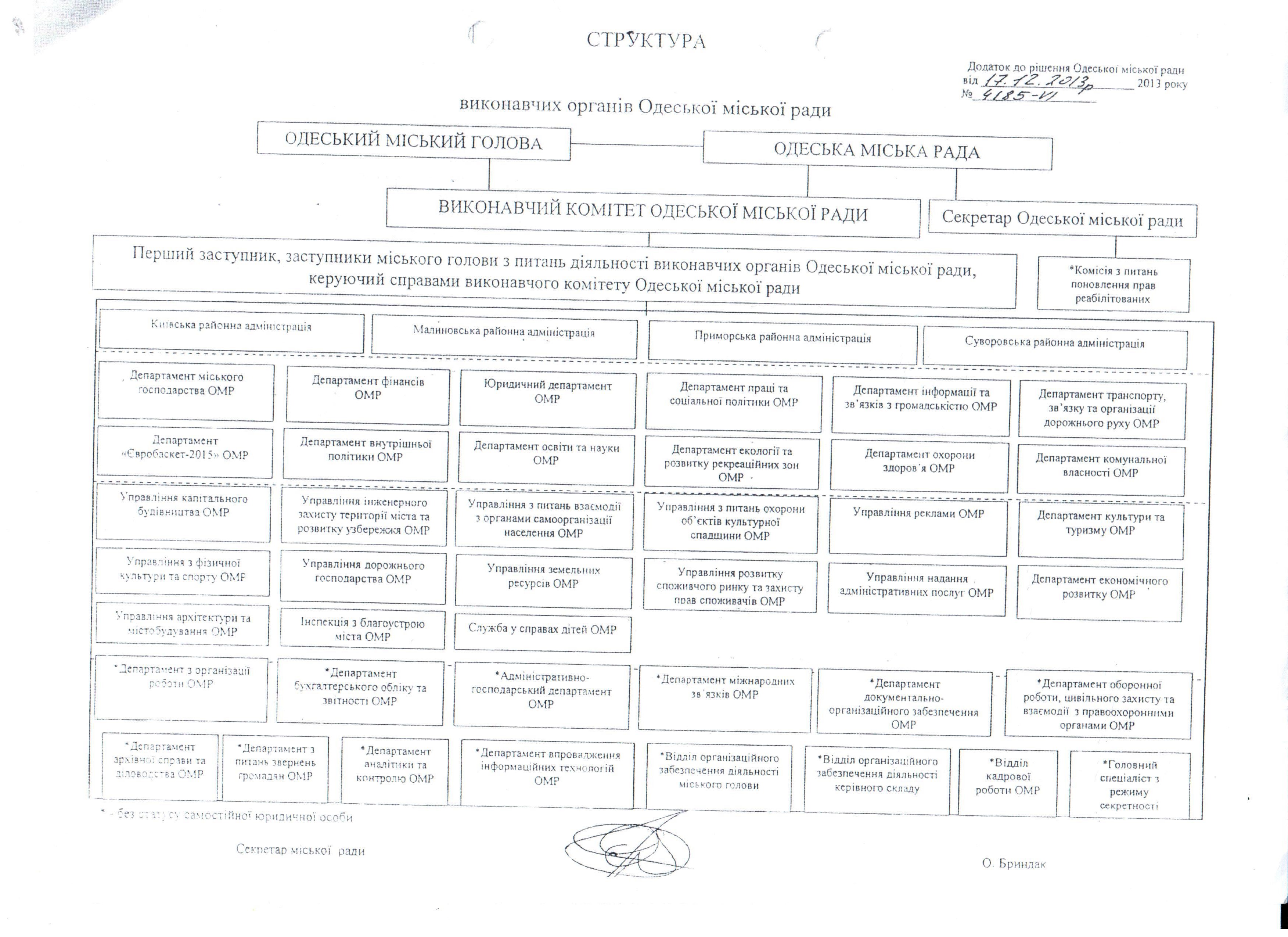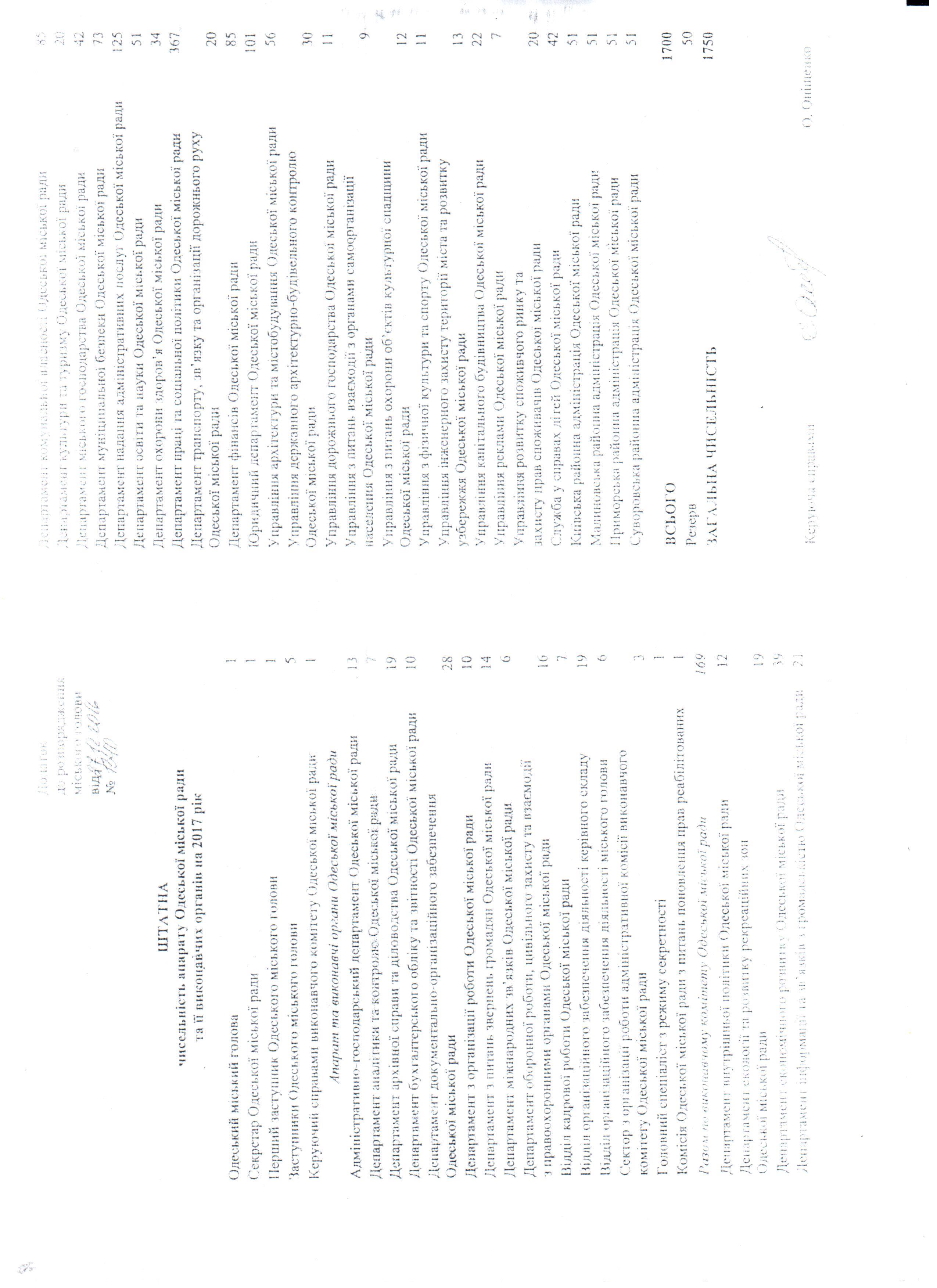 1. Структуру міської ради та її виконавчих органів, чисельність працівників у кожному виконавчому органі (департаментах, управліннях і т.д.) та загальна чисельність штатних одиниць Одеської міської ради