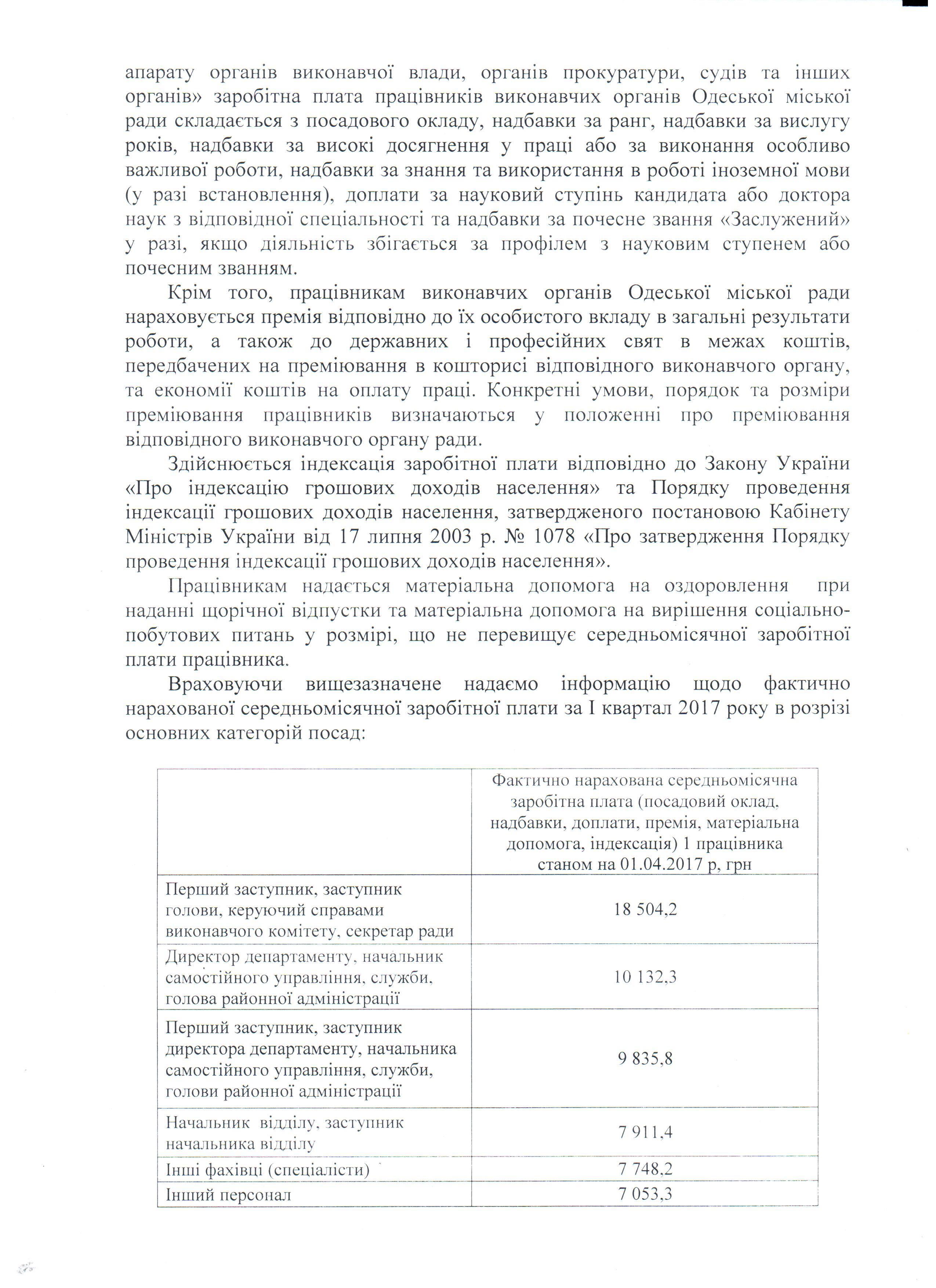 2. Щодо зарплати працівників - спеціалістів, керівників відділів, управлінь, департаментів Одеської міської ради