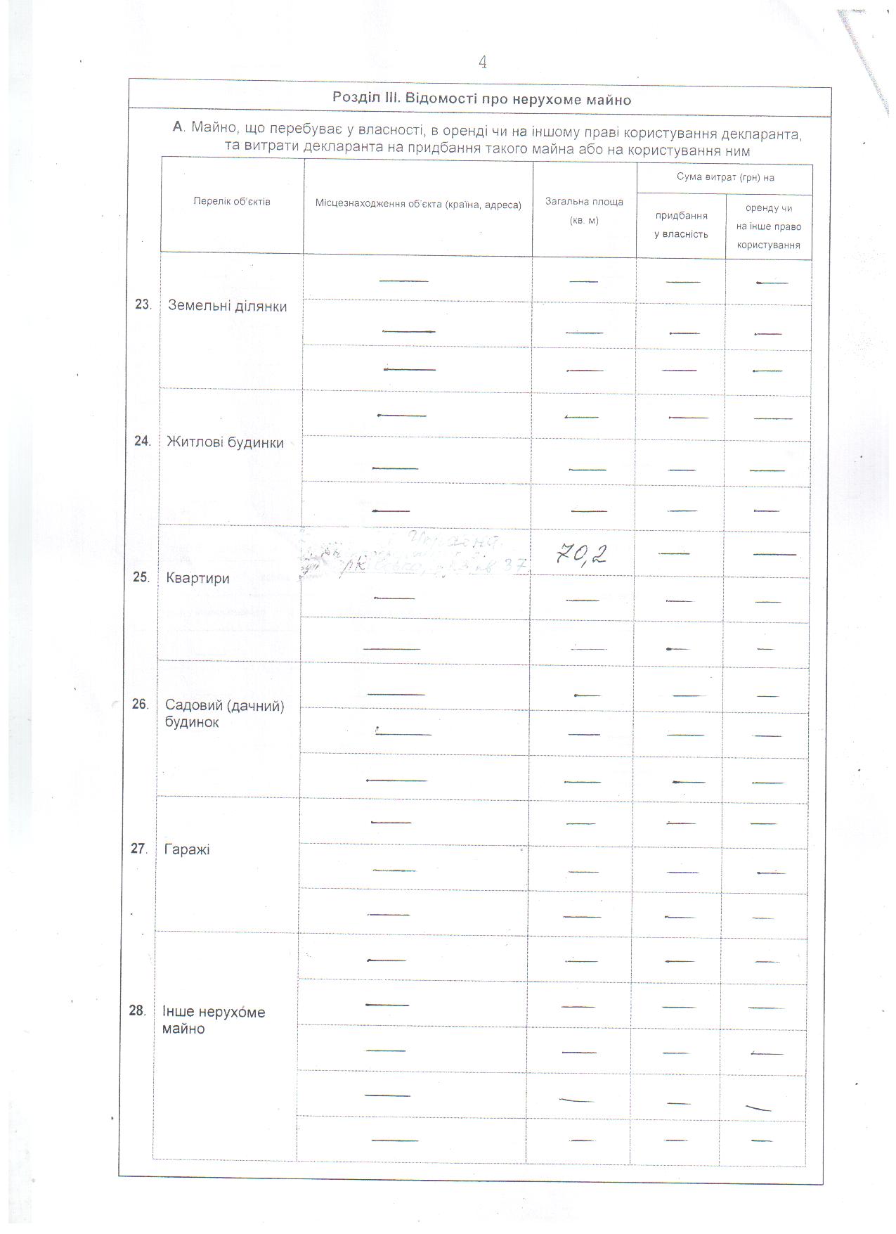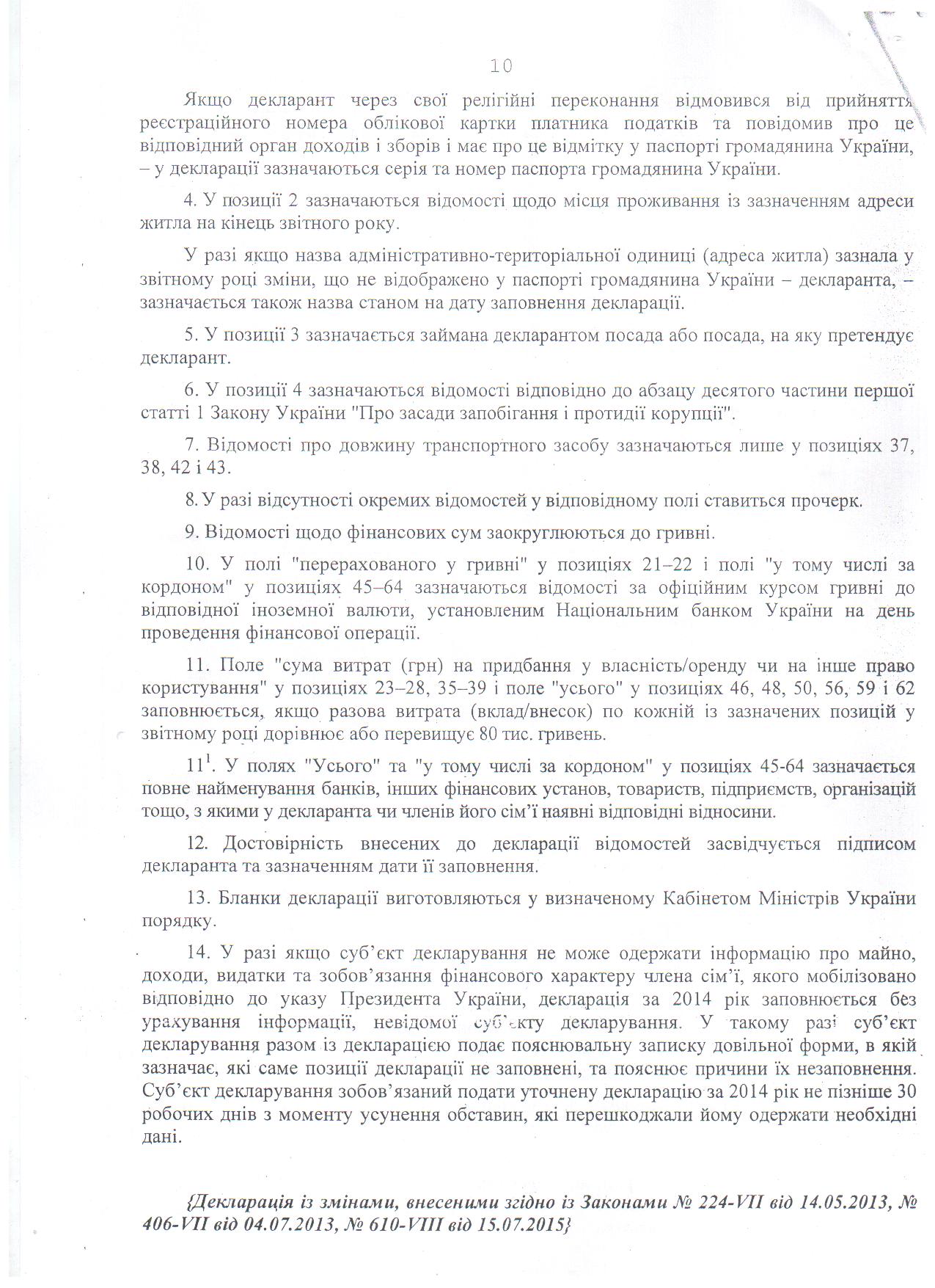 Декларацію про майно, доходи, витрати і зобов'язання фінансового характеру начальника відділу комплектування документами з особового складу та використання архівної інформації архівного управління Кам'янської міської ради за 2015 р