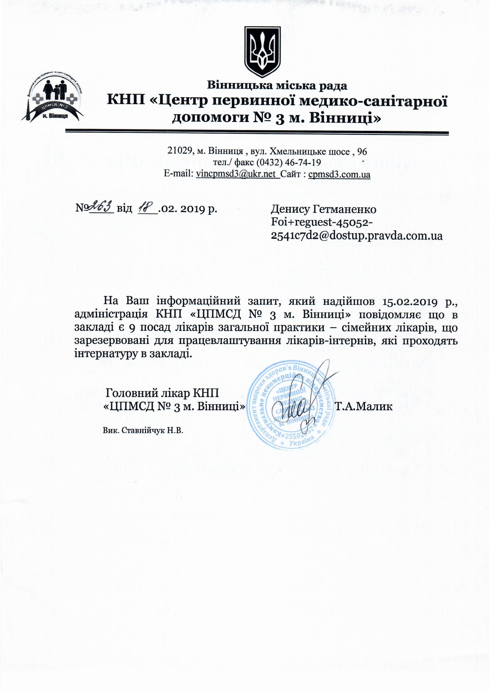 повідомляє про те, що на даний час вакантних посад лікарів в нашій