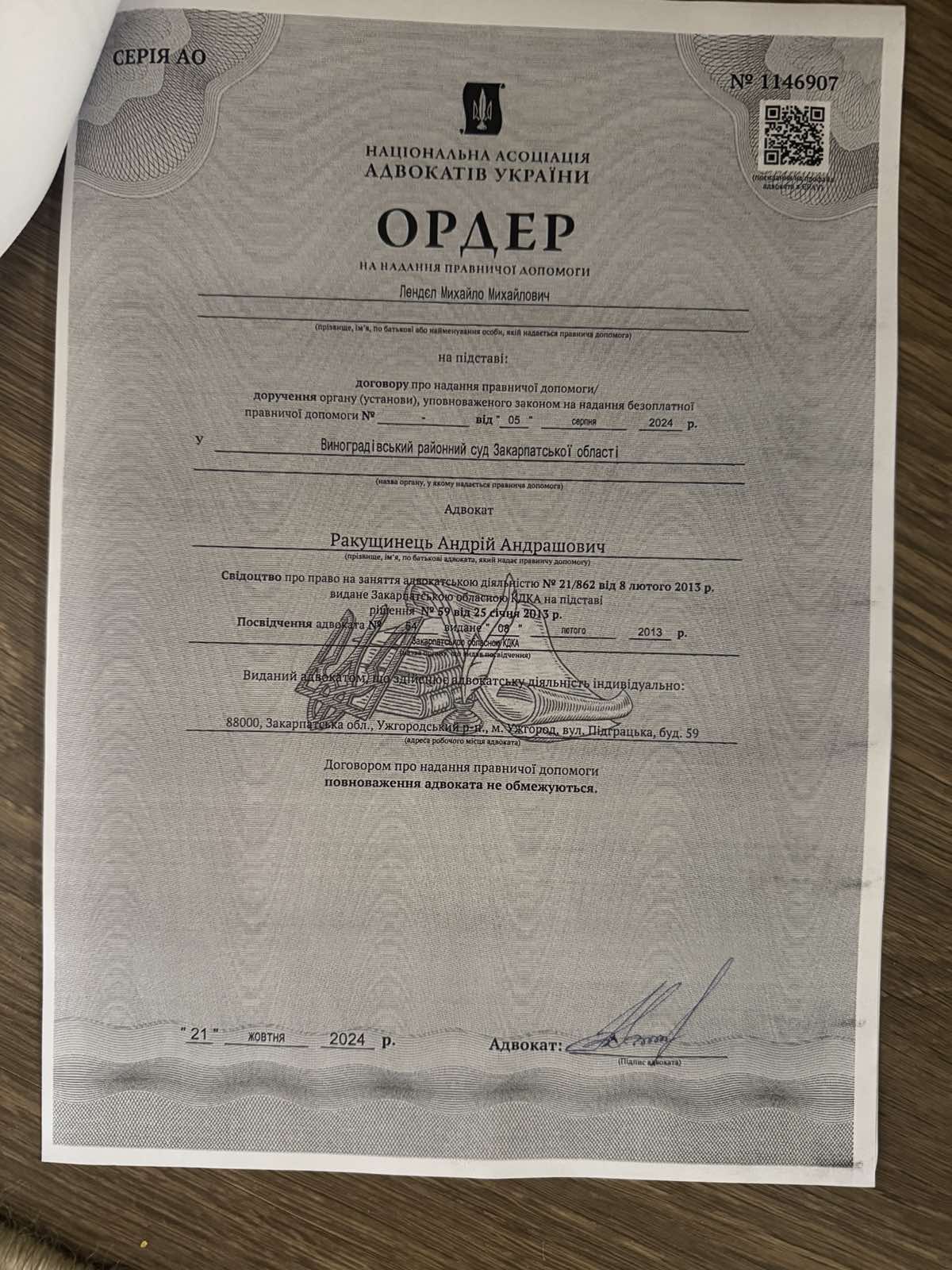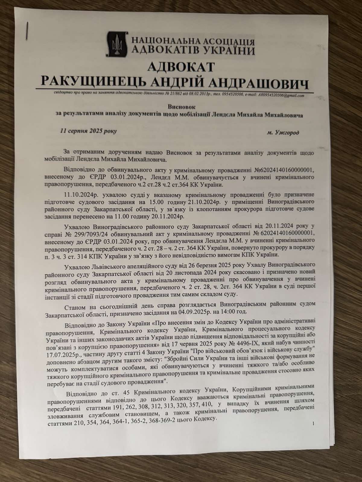 10,08,2025р. Лендєл ММ. 12.02.1986 р.н доставлений в Ужгородський ТЦК, по