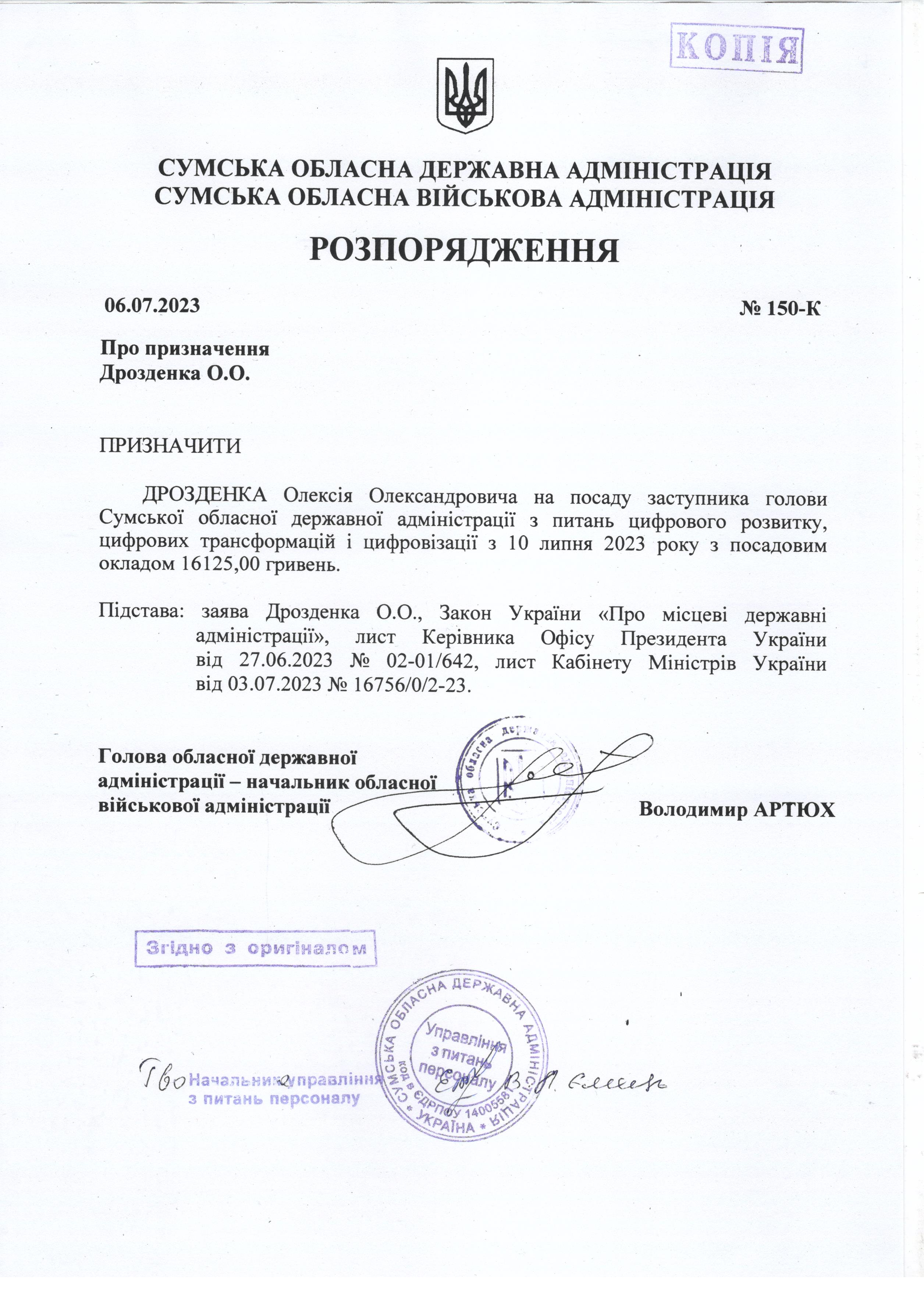 Копії кадрових наказів