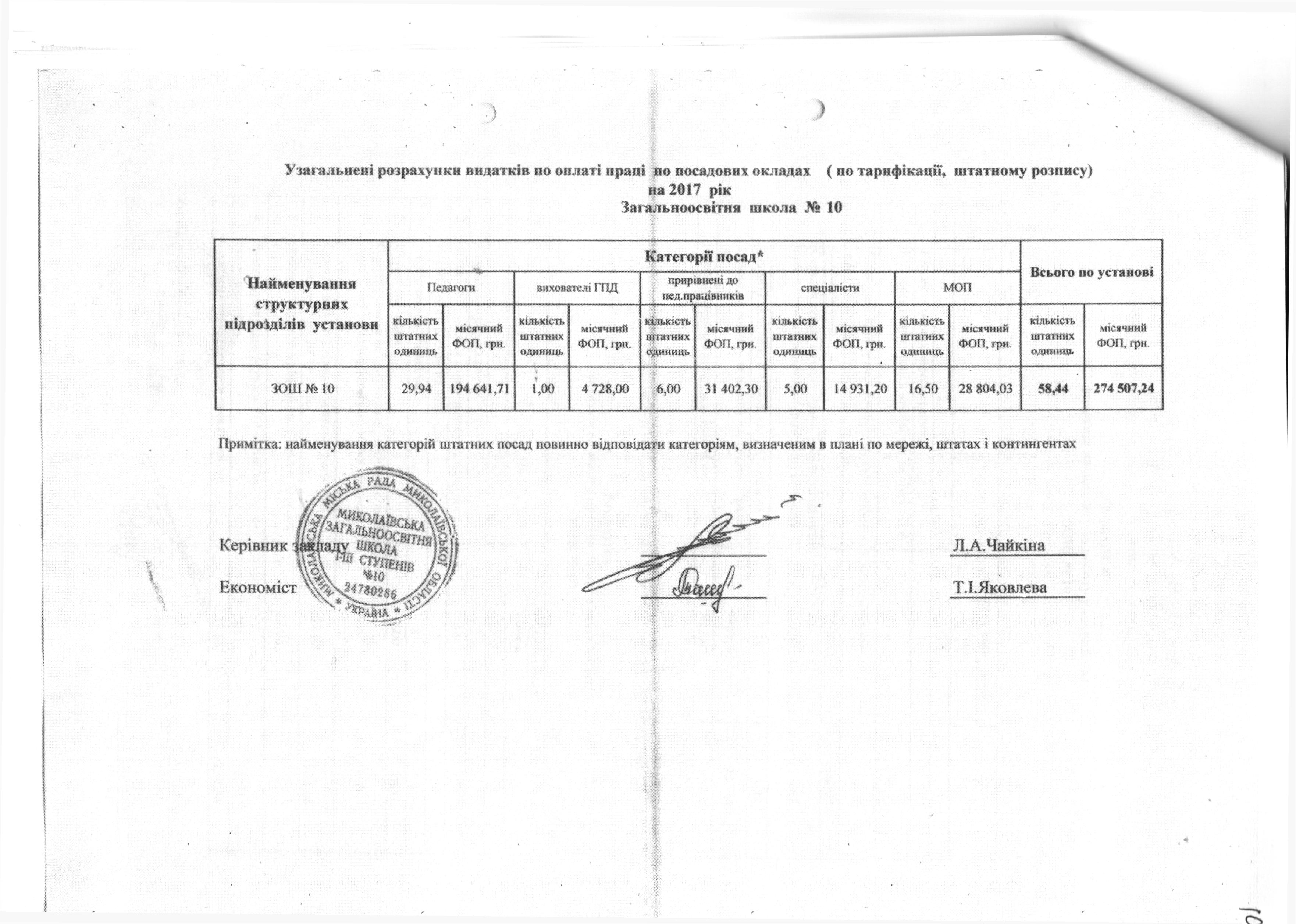 - Копію кошторису та розрахунку до кошторису на 2017р. Загальноосвітня школа №10;