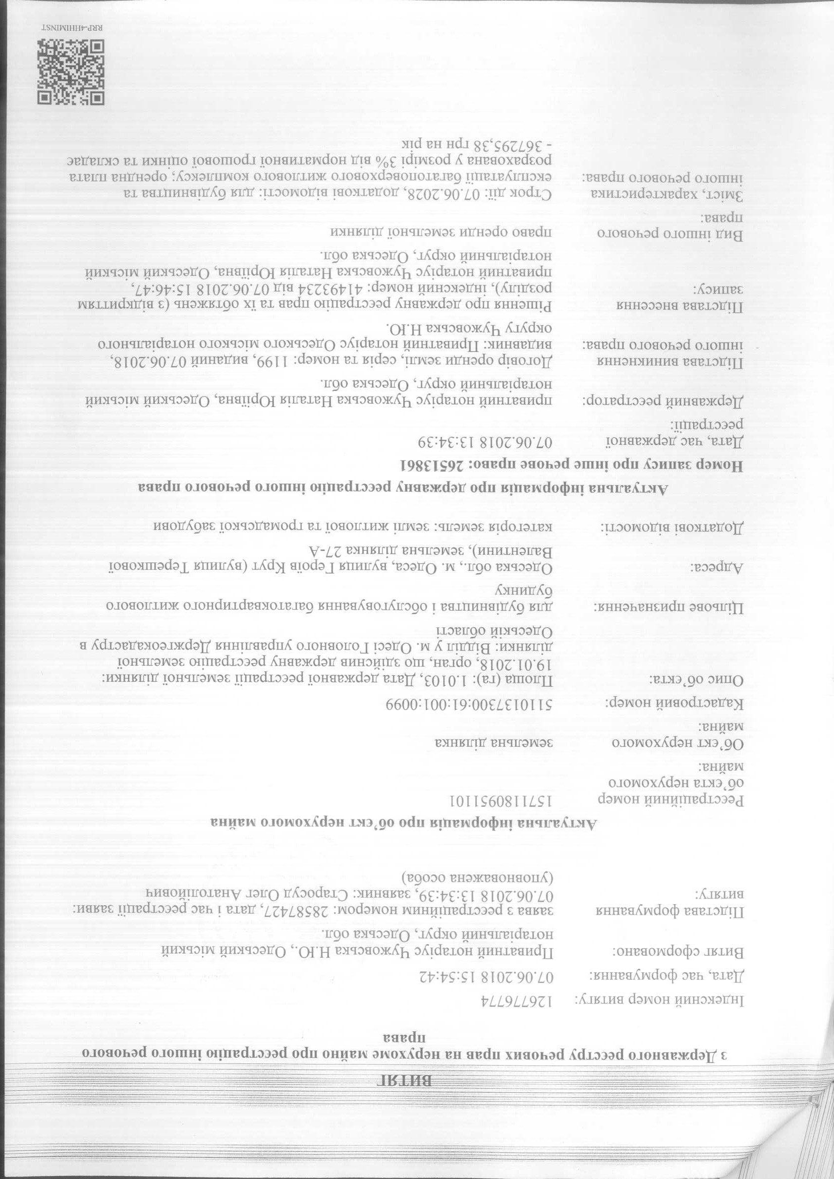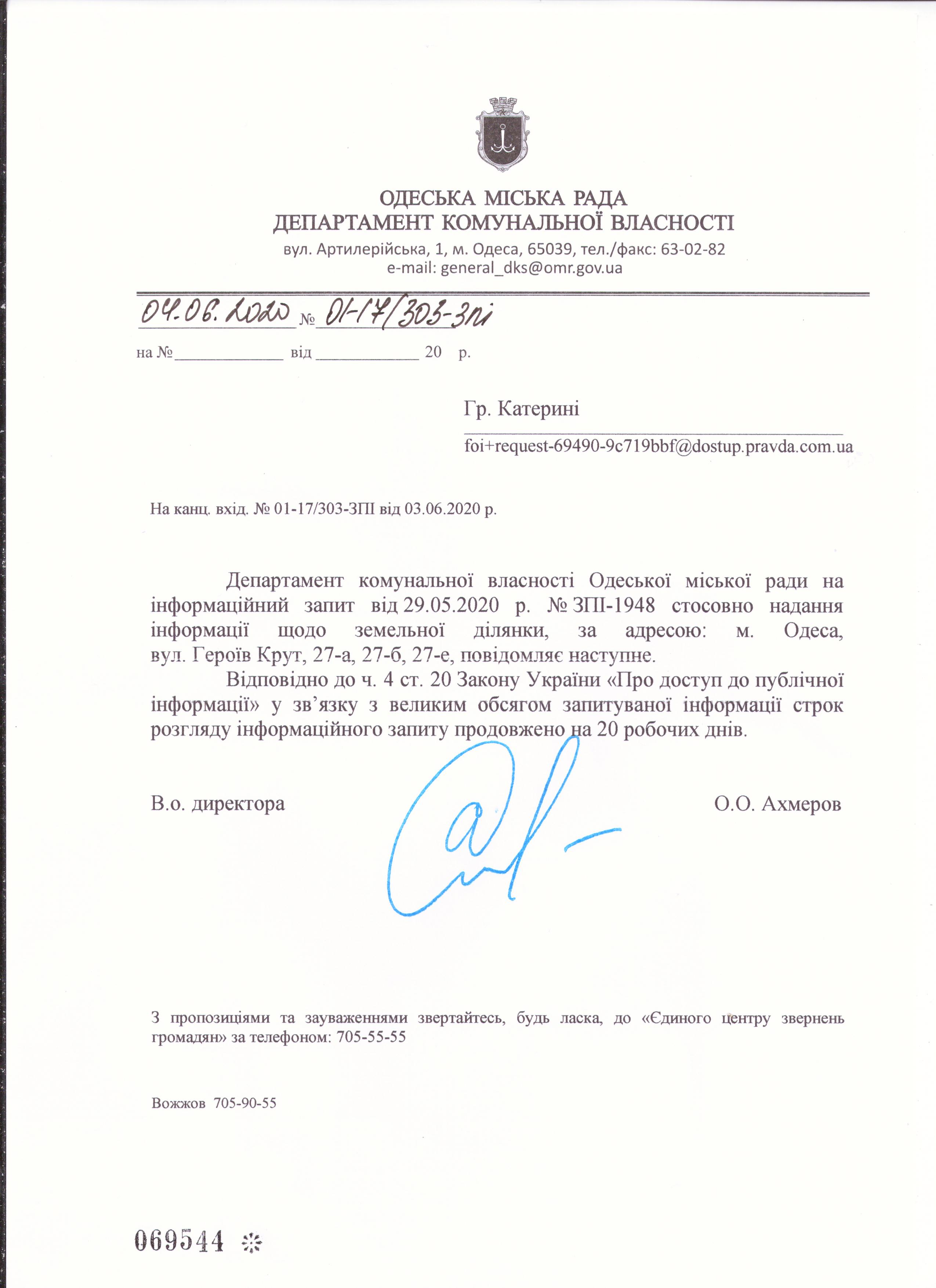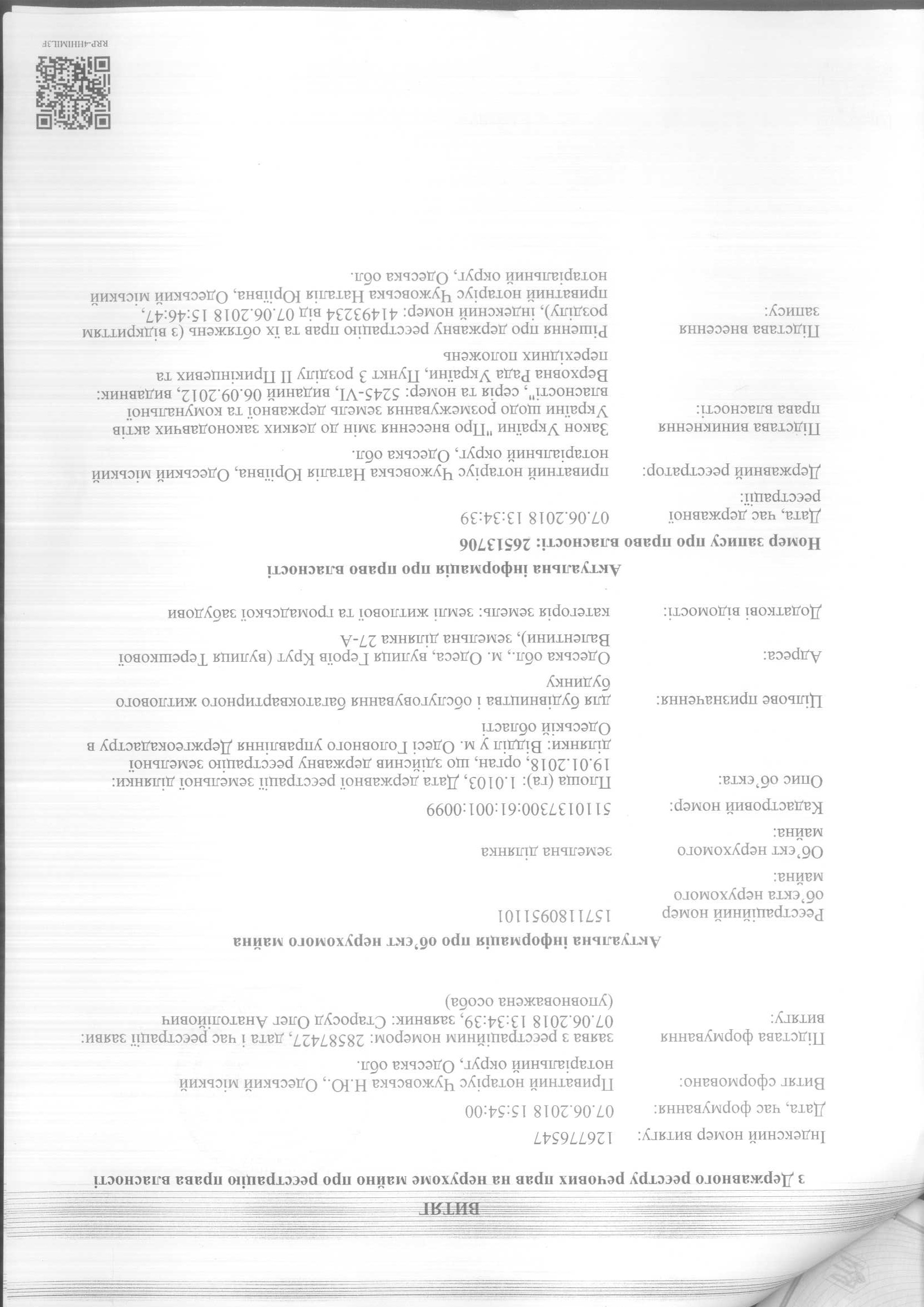1.Копію реєстраційної справи на земельну ділянку за адресою: м. Одеса, вул. Героїв Крут, 27-а, 2-б, 27-е;