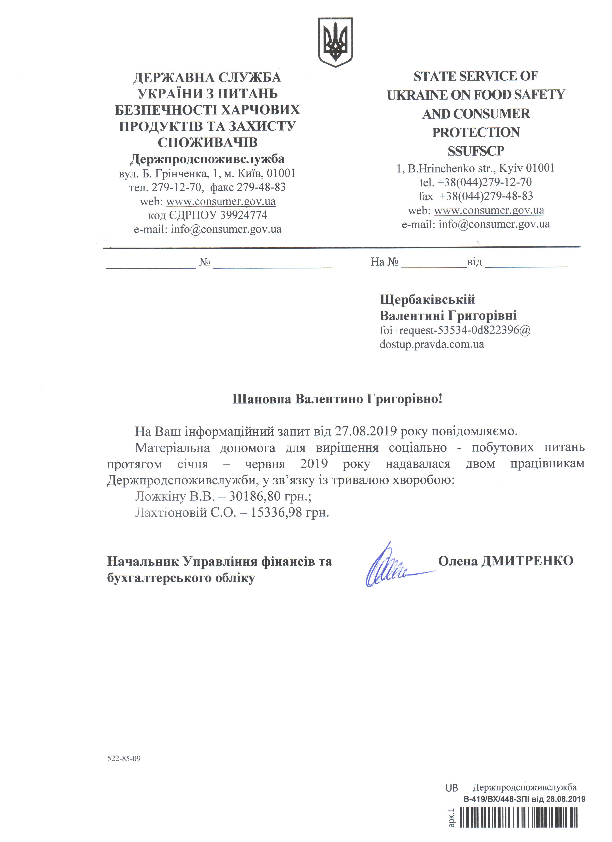 До: Державна служба України з питань безпечності харчових продуктів та захисту споживачів -