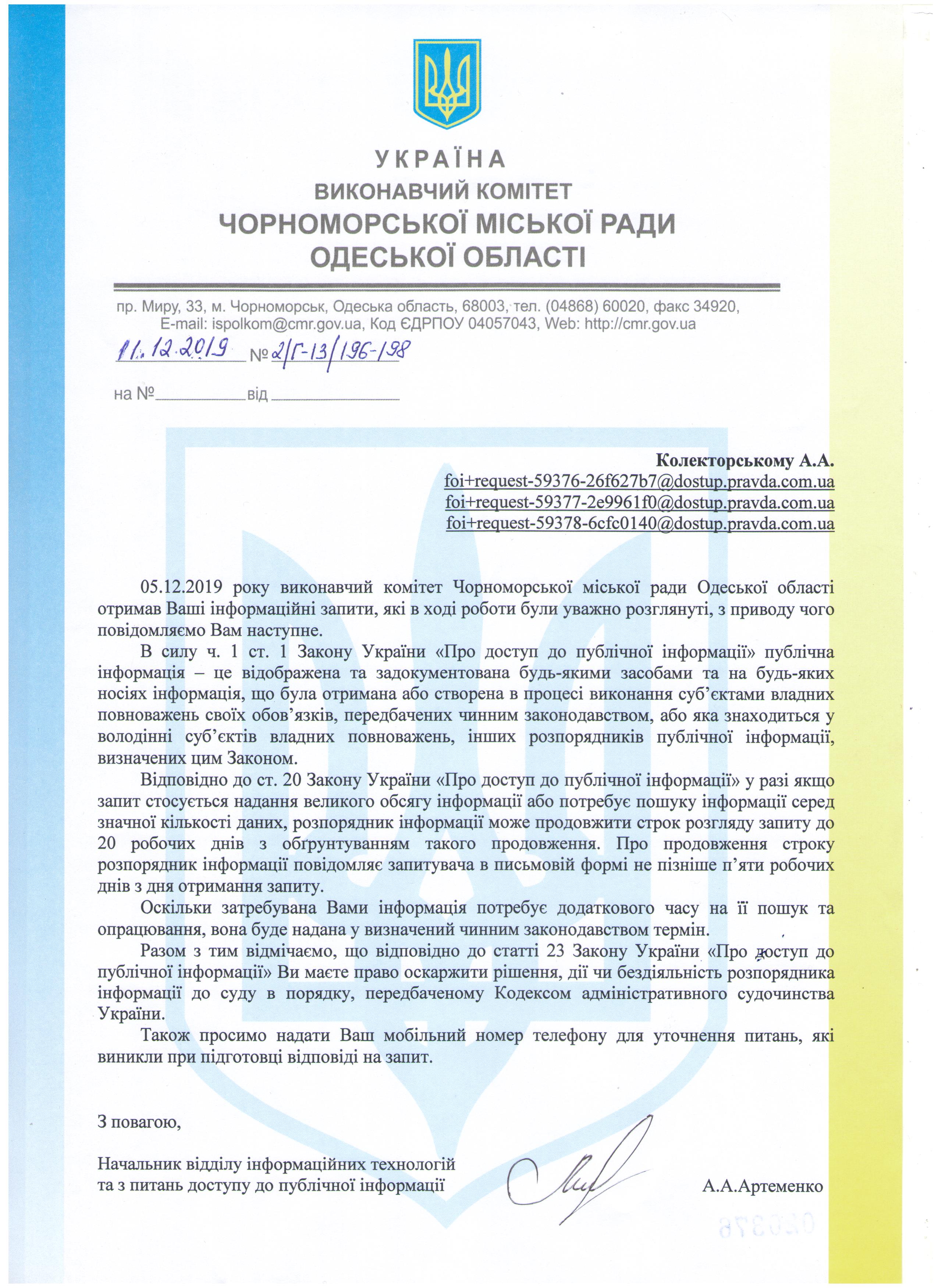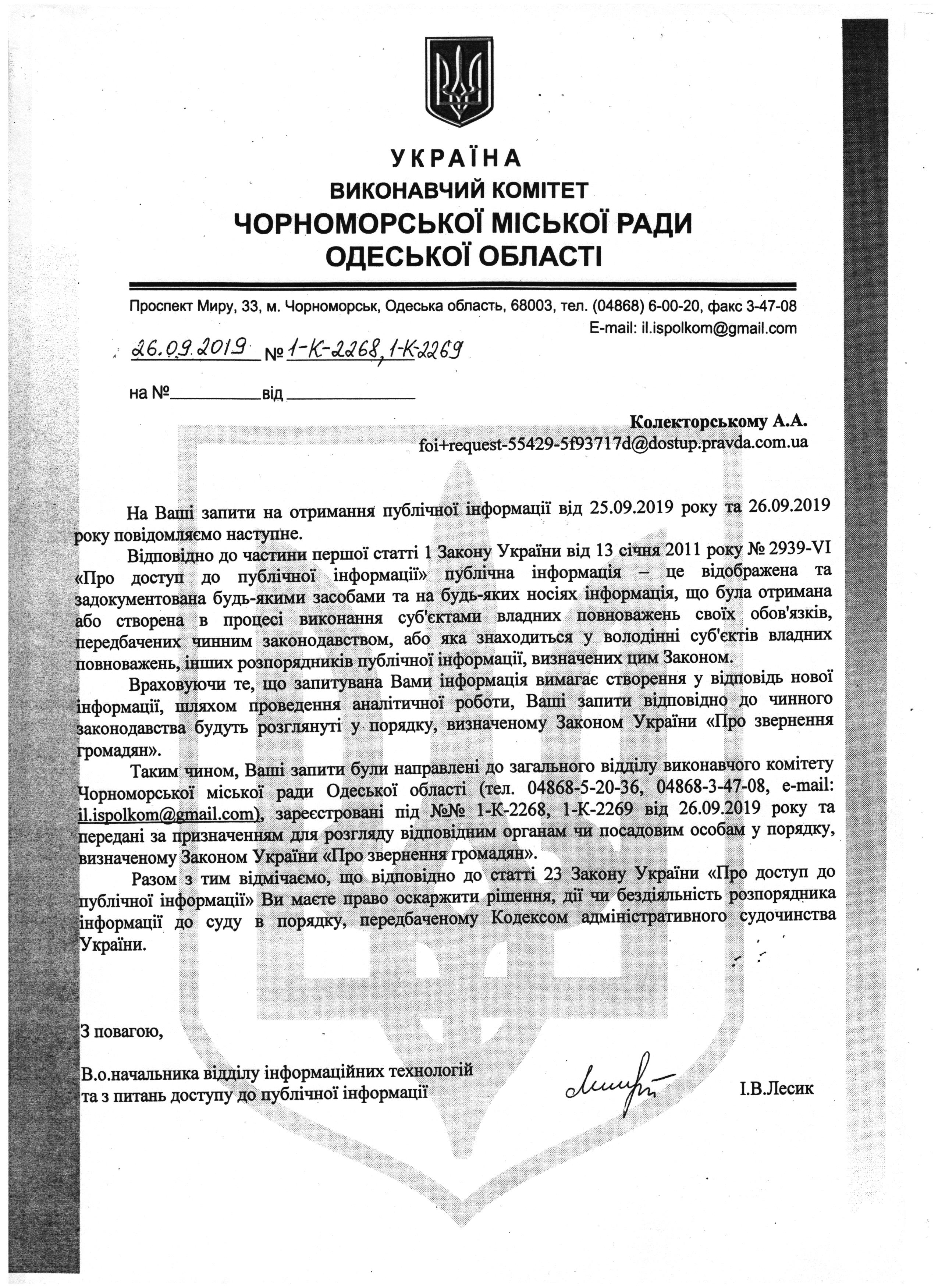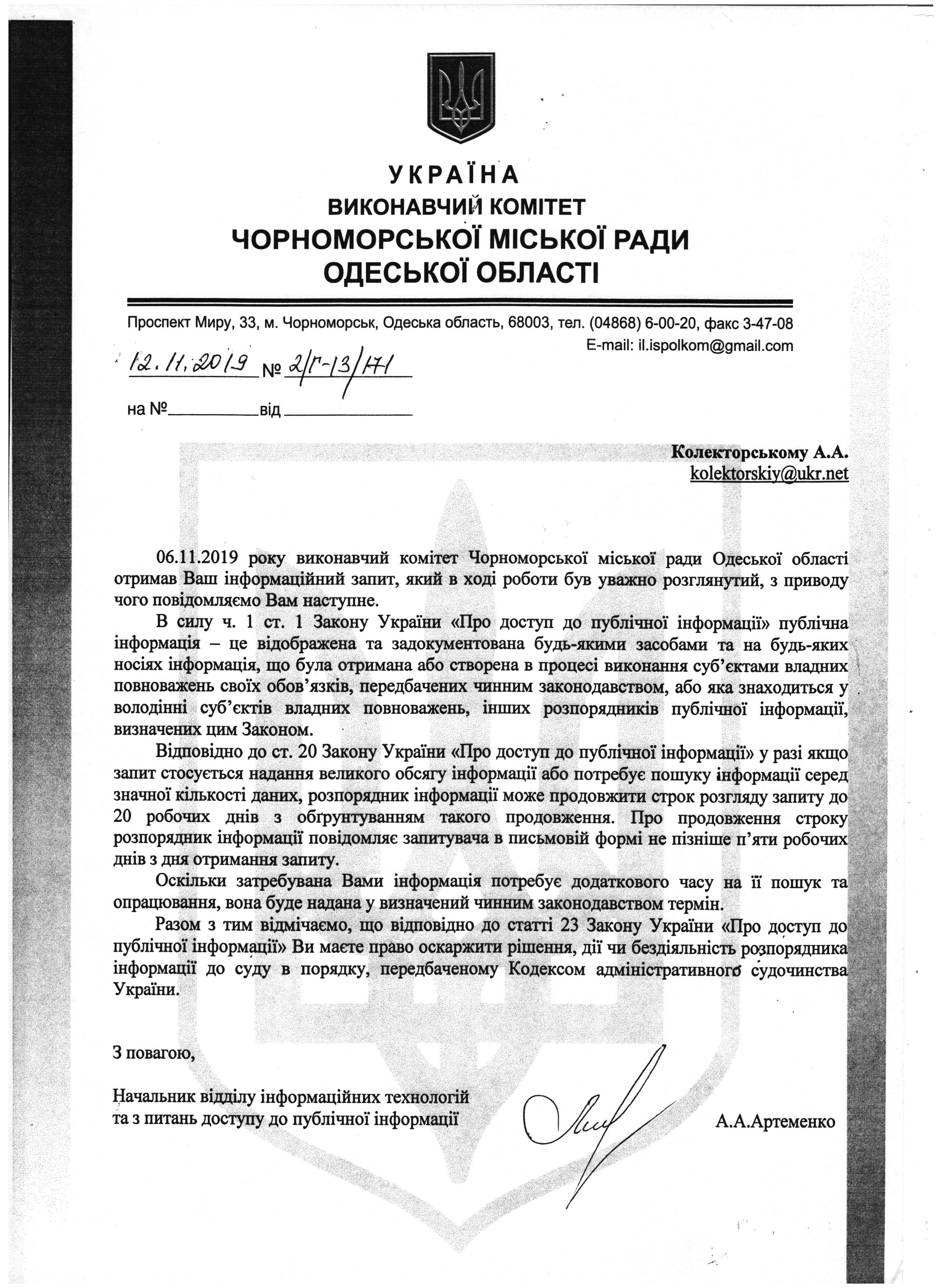 Відповідь прошу надати в передбачені Закону України «Про доступ до публічної інформації» строки.