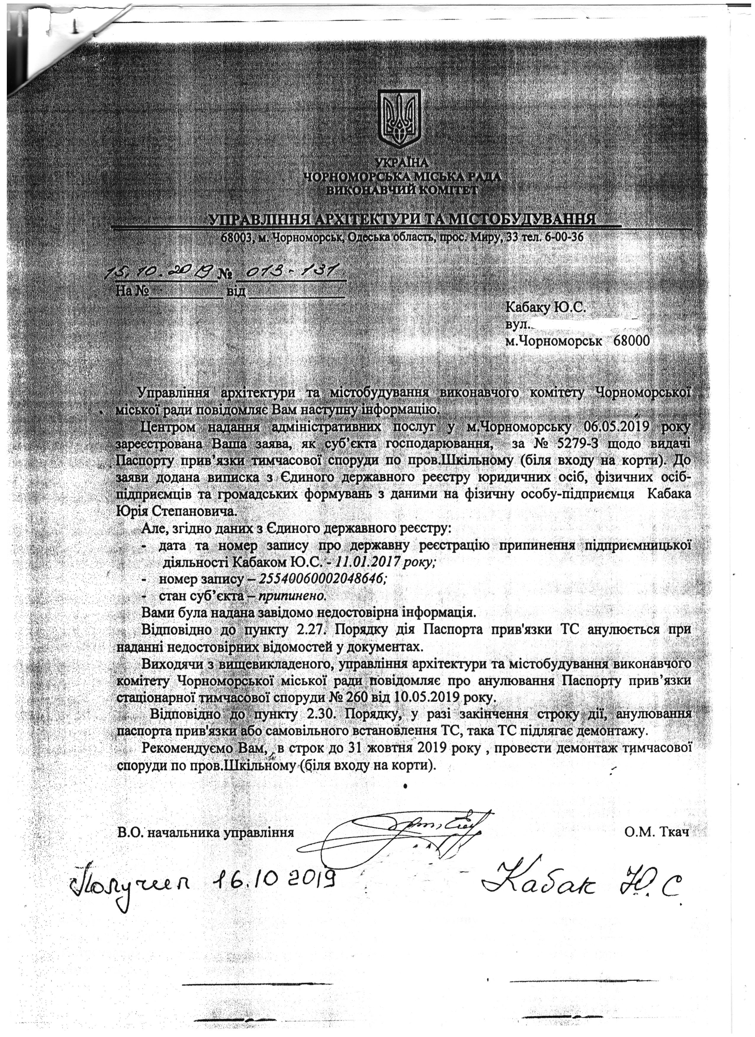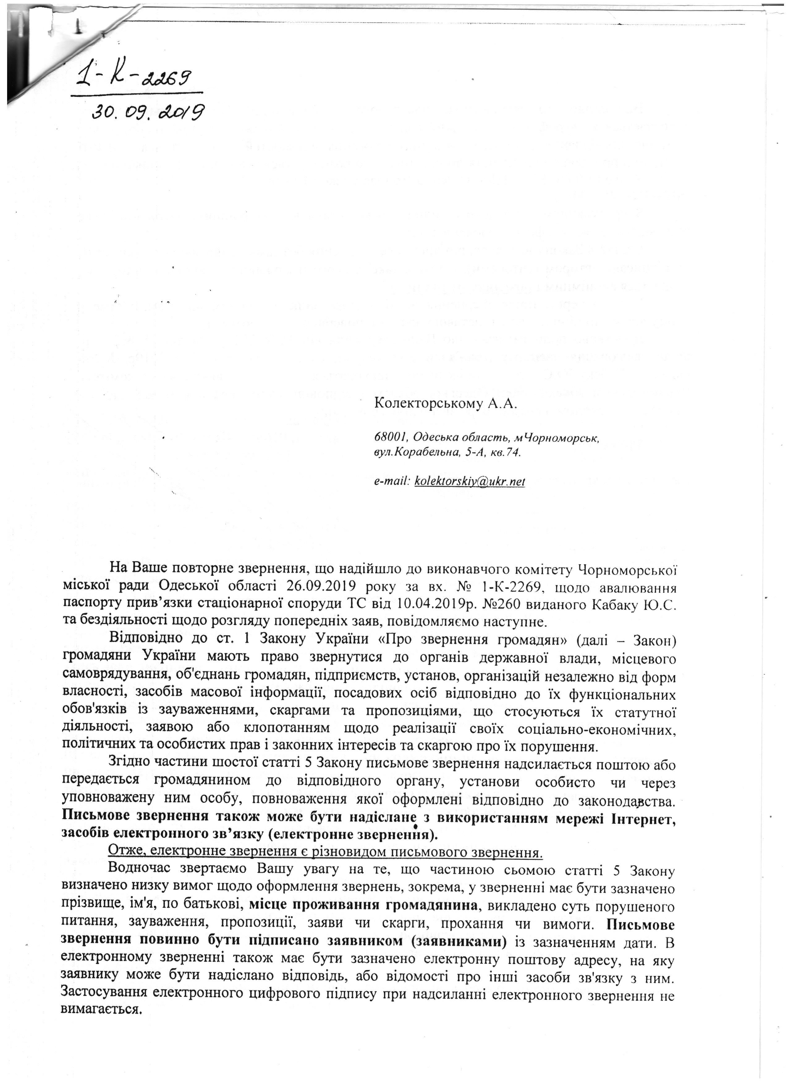 надання відповідей на запити по Кабак Ю.С.