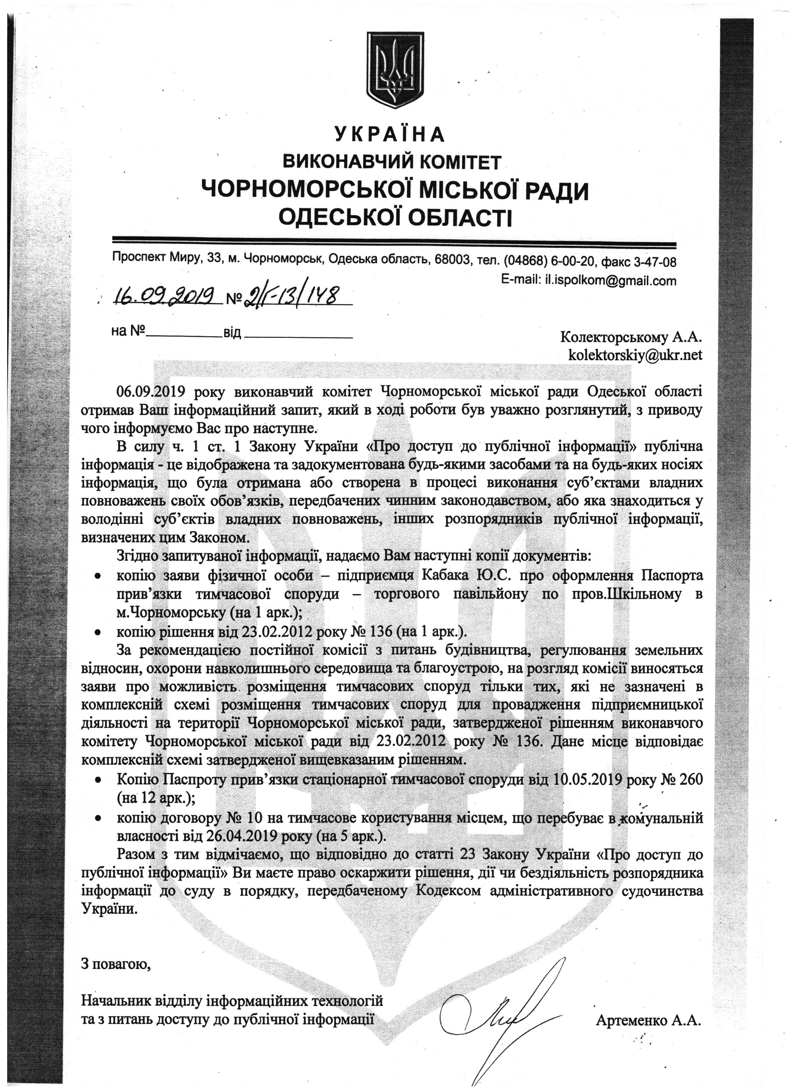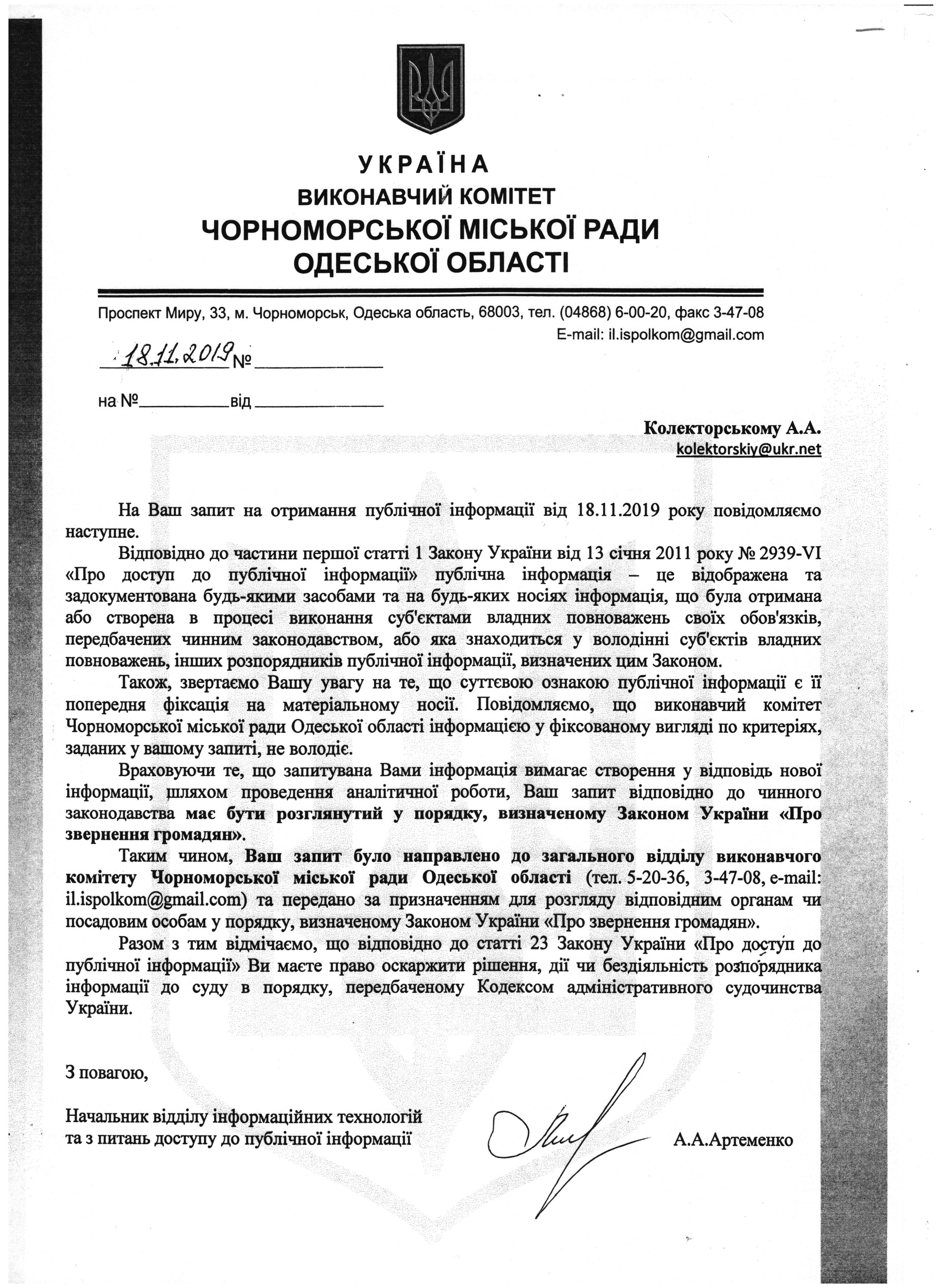 На підставі статей 1, 13, 19, 20 Закону України «Про доступ до публічної інформації» від 13 січня 2011 року, які надають право звертатись із запитами до розпорядників інформації щодо надання публічної інформації, прошу надати наступну інформацію (наступні документи):