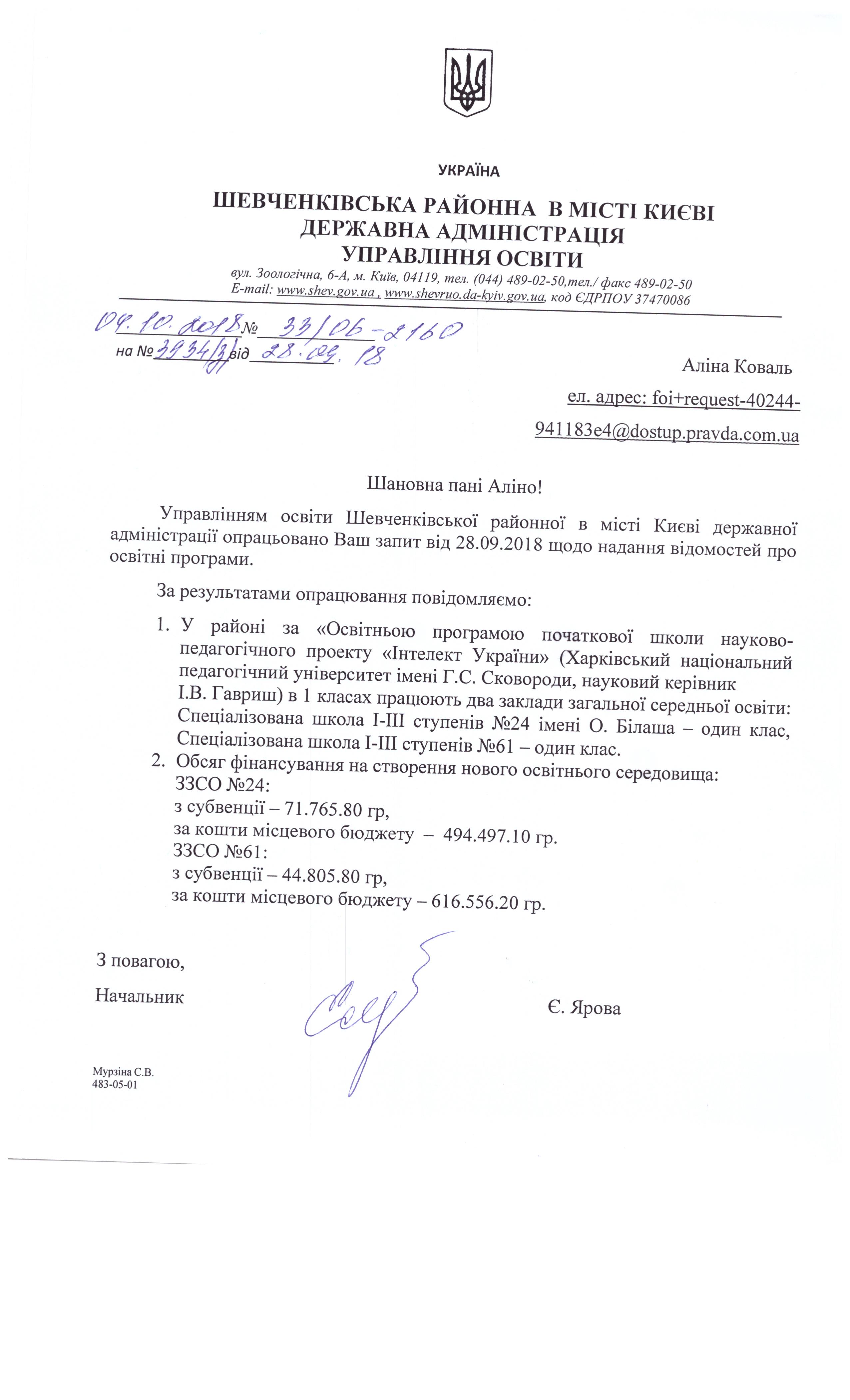 відповідь на запит по доступу до публічної інформації від 28.09.2018