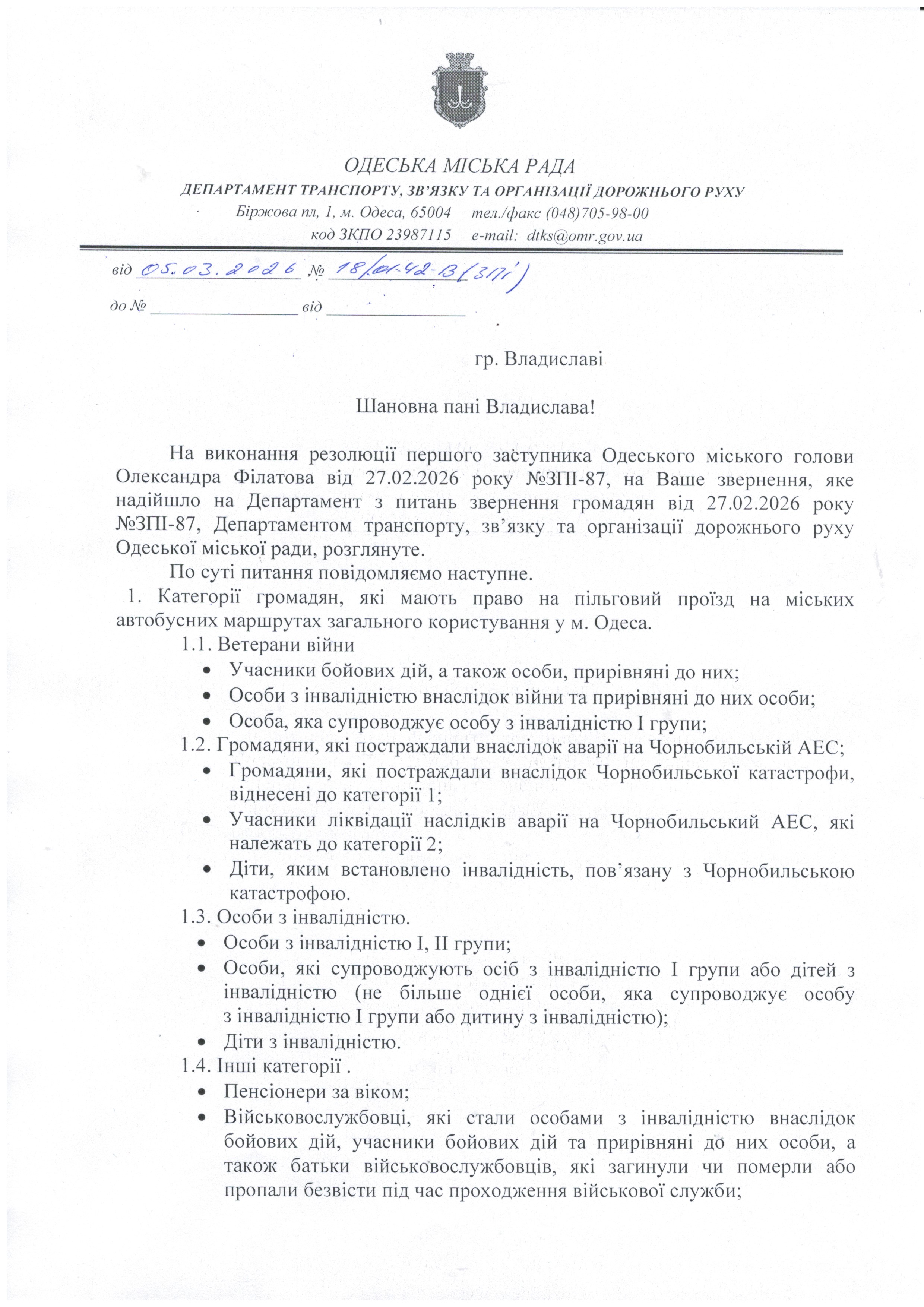 1. Перелік категорій громадян, які мають право на пільговий проїзд у Одесі.