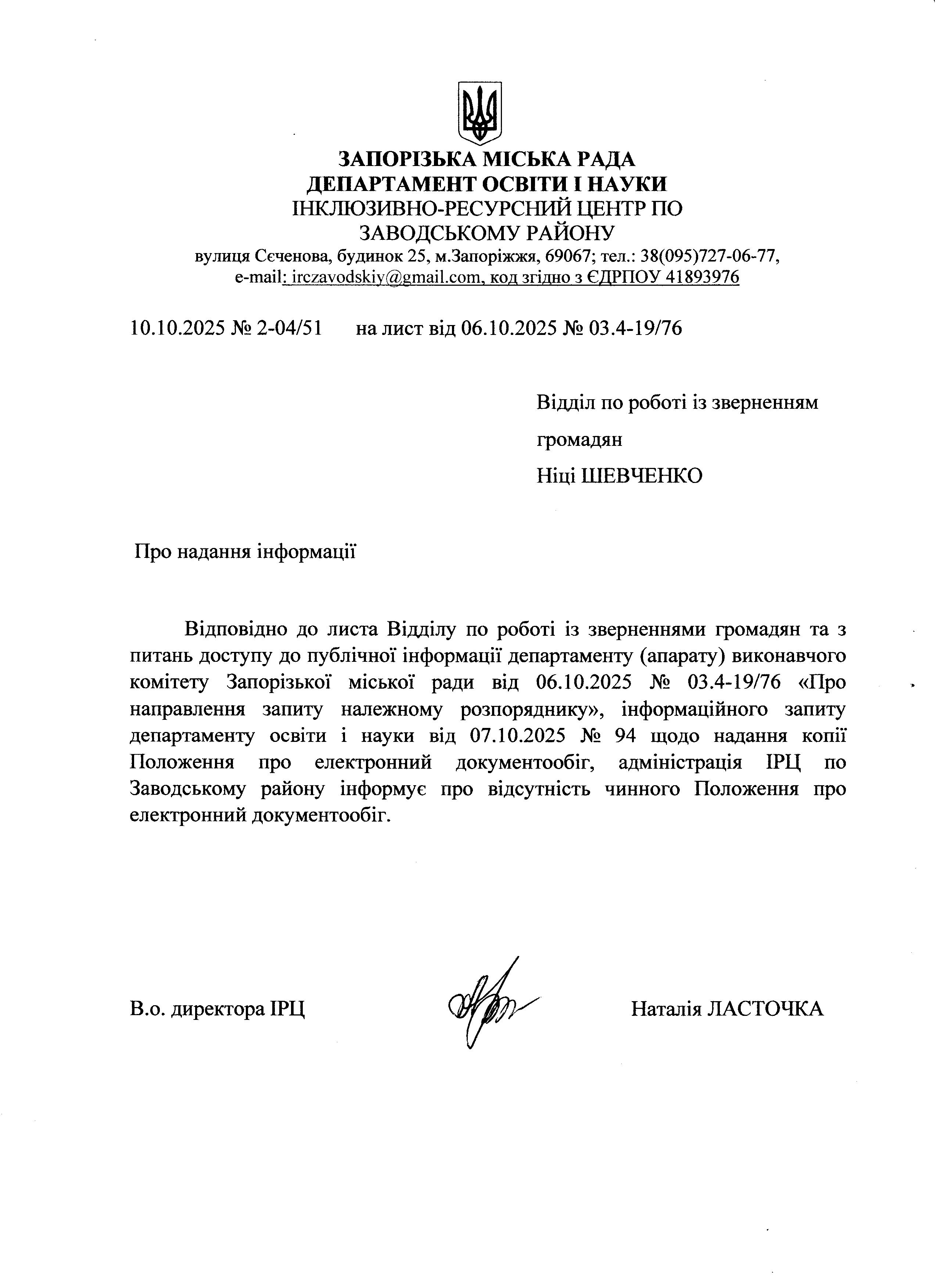 - копію в електронній формі (або посилання на цей документ) чинного положення про електронний документообіг, яке застосовують виконавчий комітет Запорізької міської ради, департаменти та комунальні установи, підпорядковані Запорізькій міській раді.