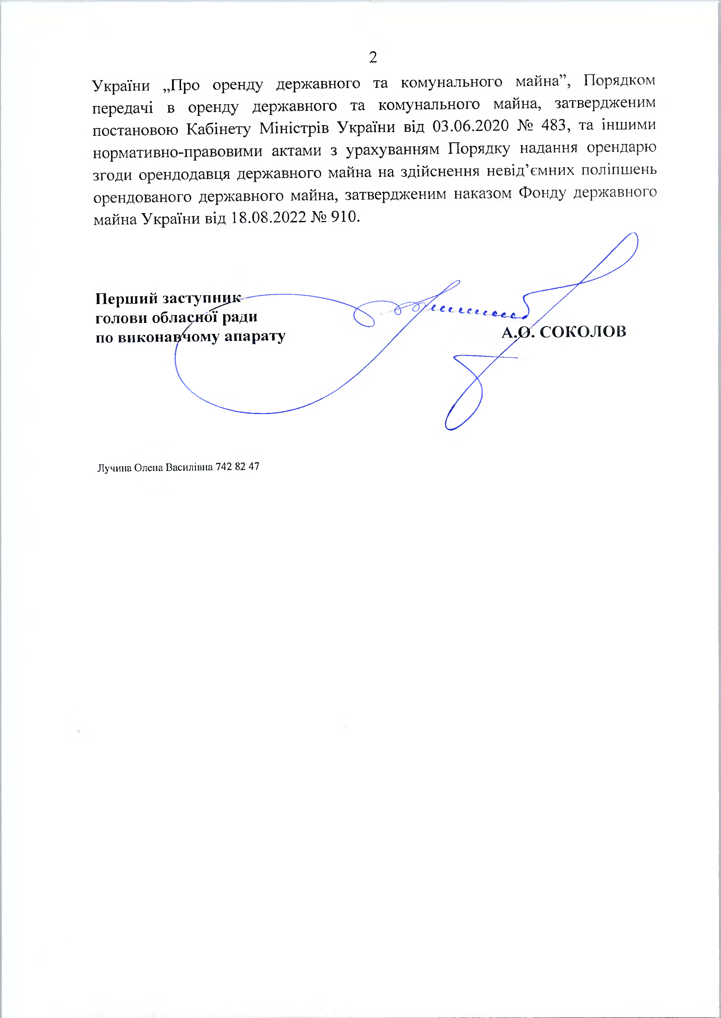 2. Якщо такий документ затверджено, то просимо надати посилання та/або скановану копію на чинну редакцію такого документу, яким затверджено порядок за яким орендар комунального майна отримує згоду від Дніпропетровської обласної ради (ідентифікаційний код 23928934) на здійснення невід'ємних поліпшень орендованого комунального майна, що дає право на приватизацію такого майна.