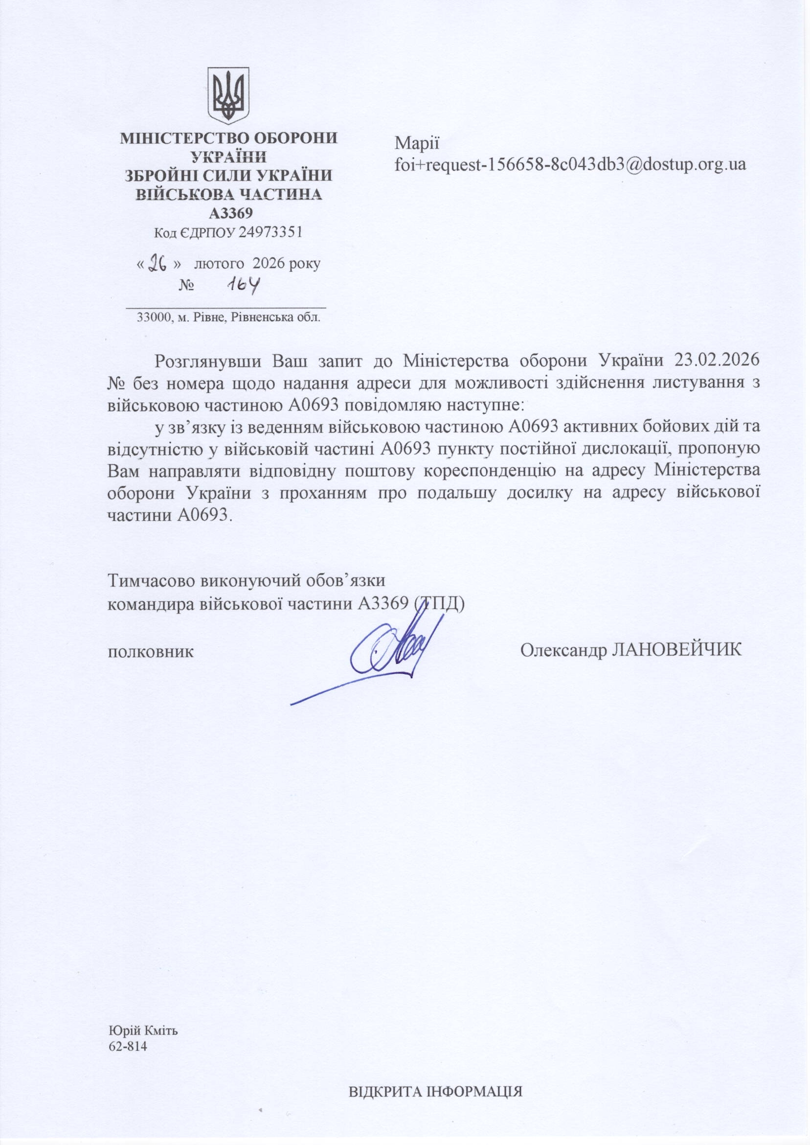 Відповідно до Вашого інформаційного запиту, надаю поштову та електронну