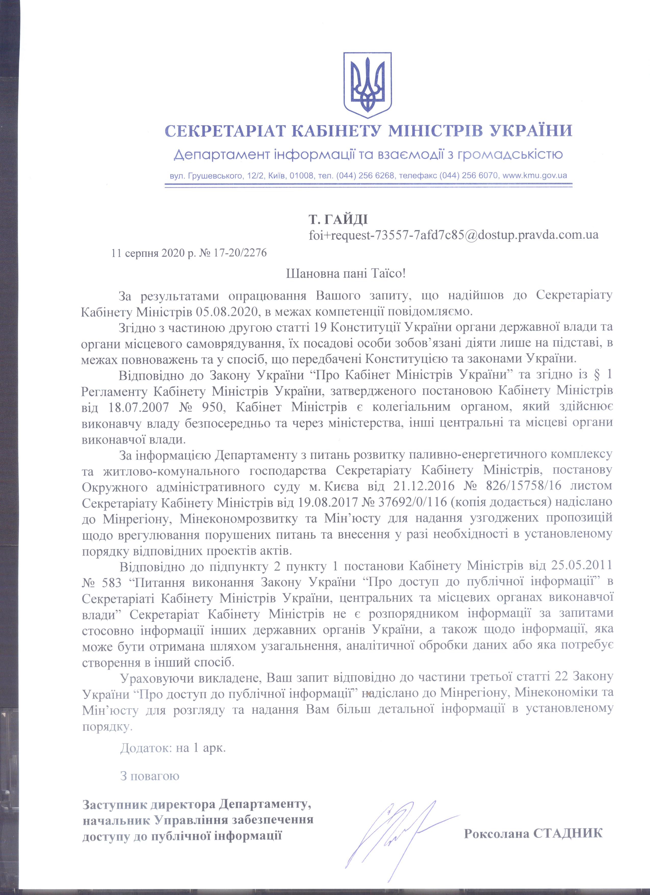 До: Кабінет Міністрів України -