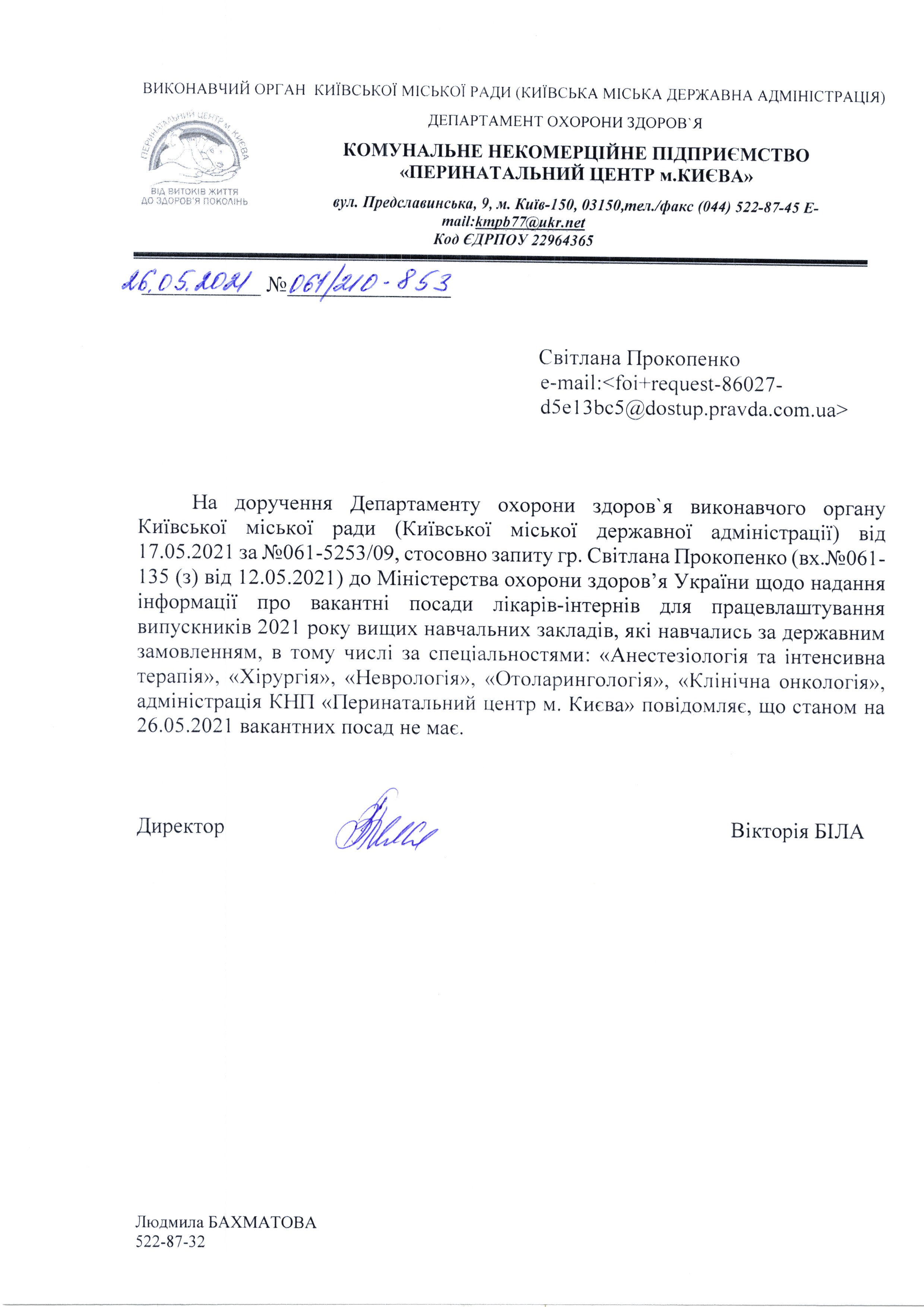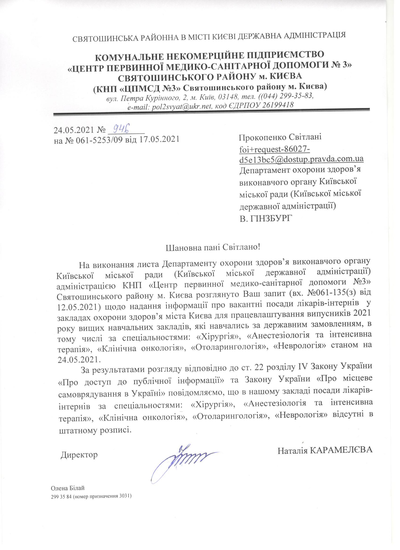 Прошу надати повний перелік вакантних посад лікаря-інтерна