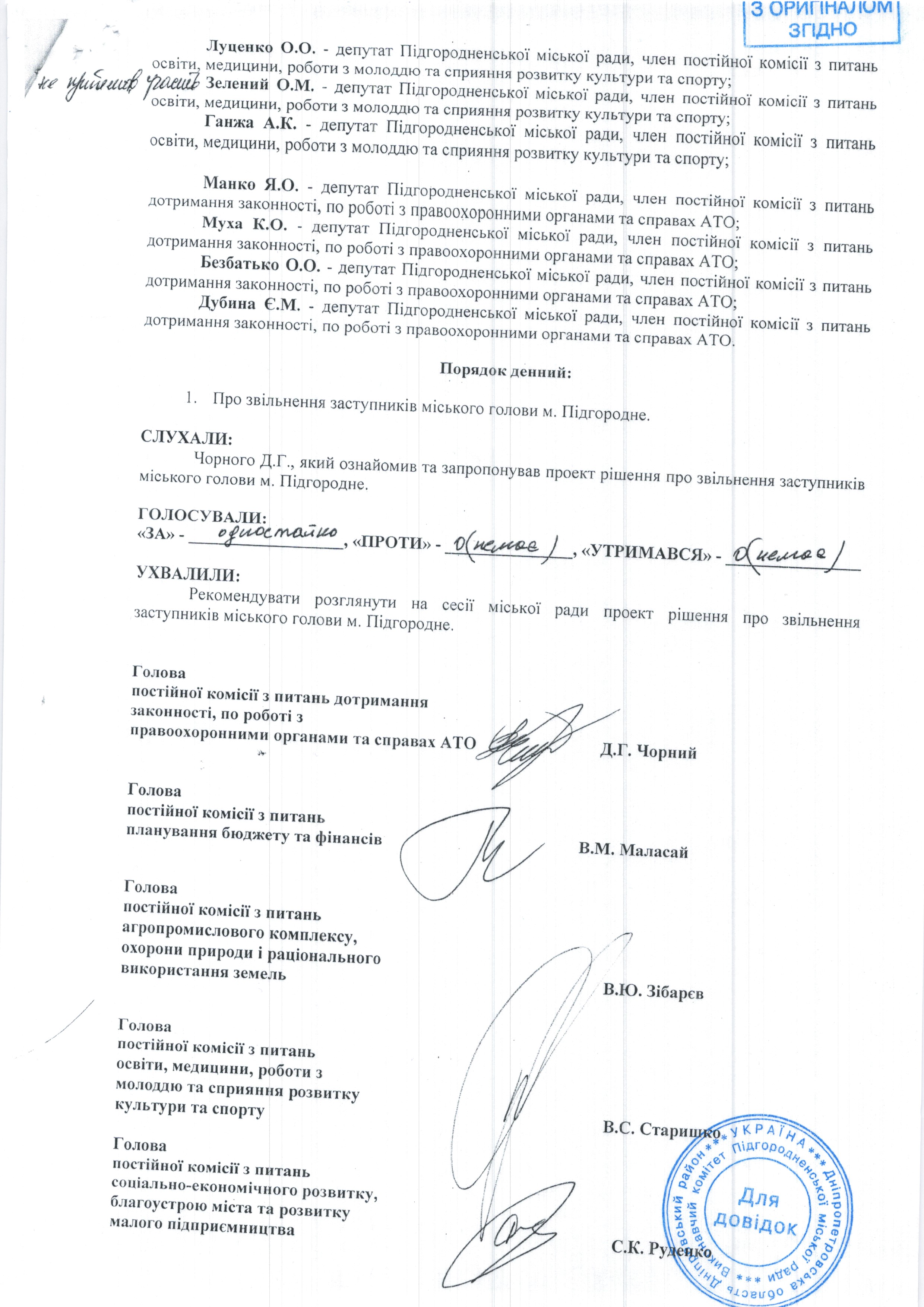 Належним чином завірені копіі протоколів та матеріалів, які роглядались на засіданнях депутатських комісій 21,12,2018