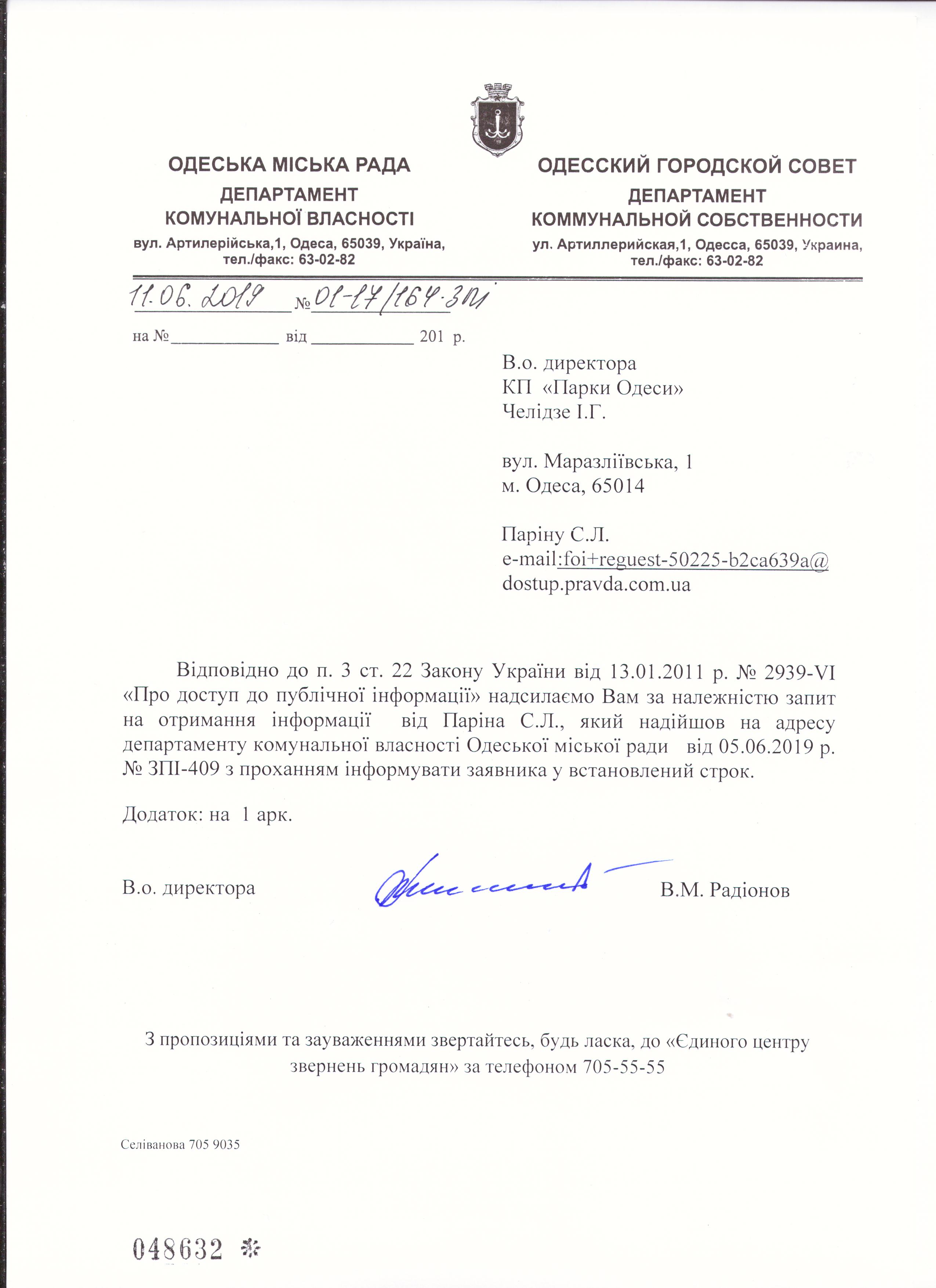 - оренди індивідуально визначеного нерухомого майна за адресою: м. Одеса, вул. Маразліївська, 1, в результія якого було укладено Договор оренди окремого індивідуально визначеного нерухомого майна №25-18Ш від 05.05.2018р. між КП «Парки Одеси» та ТОВ «Шоу»;