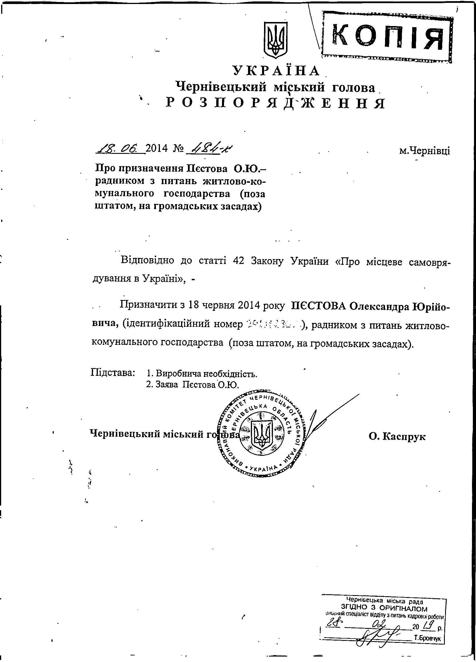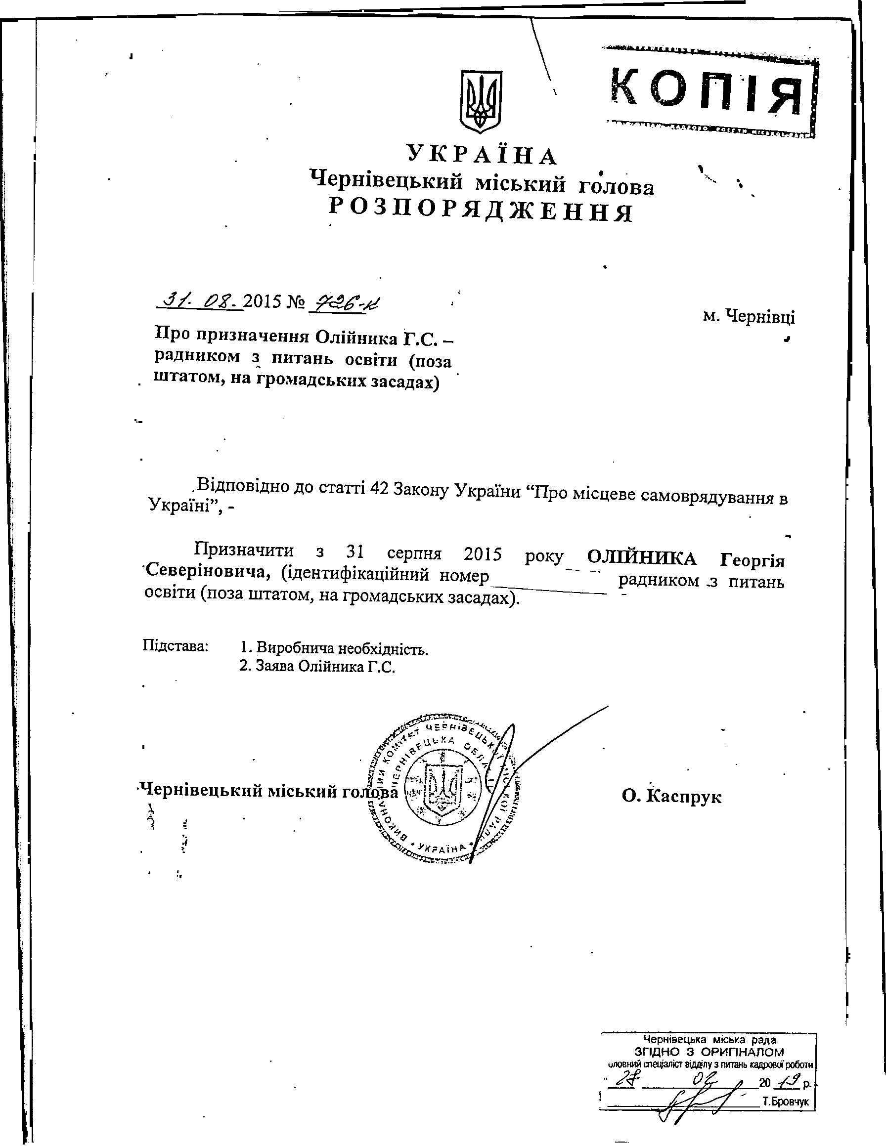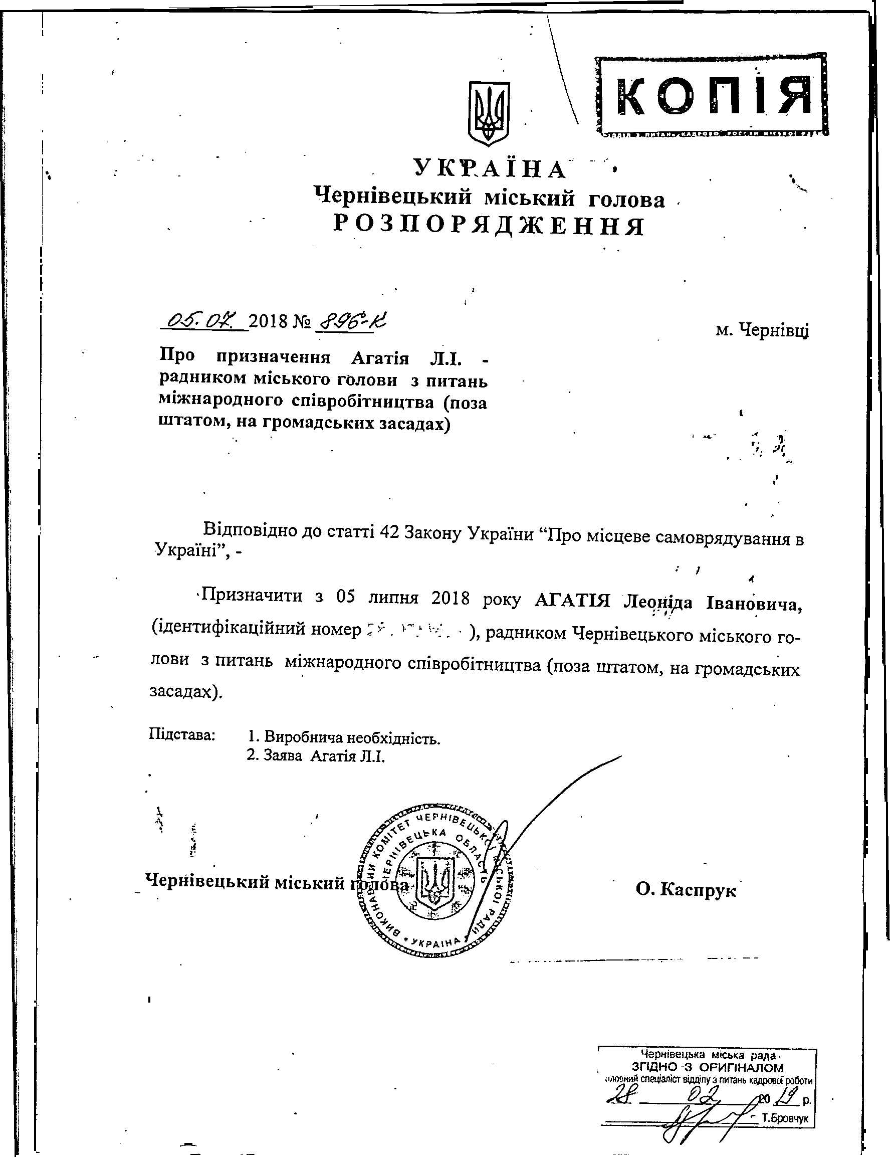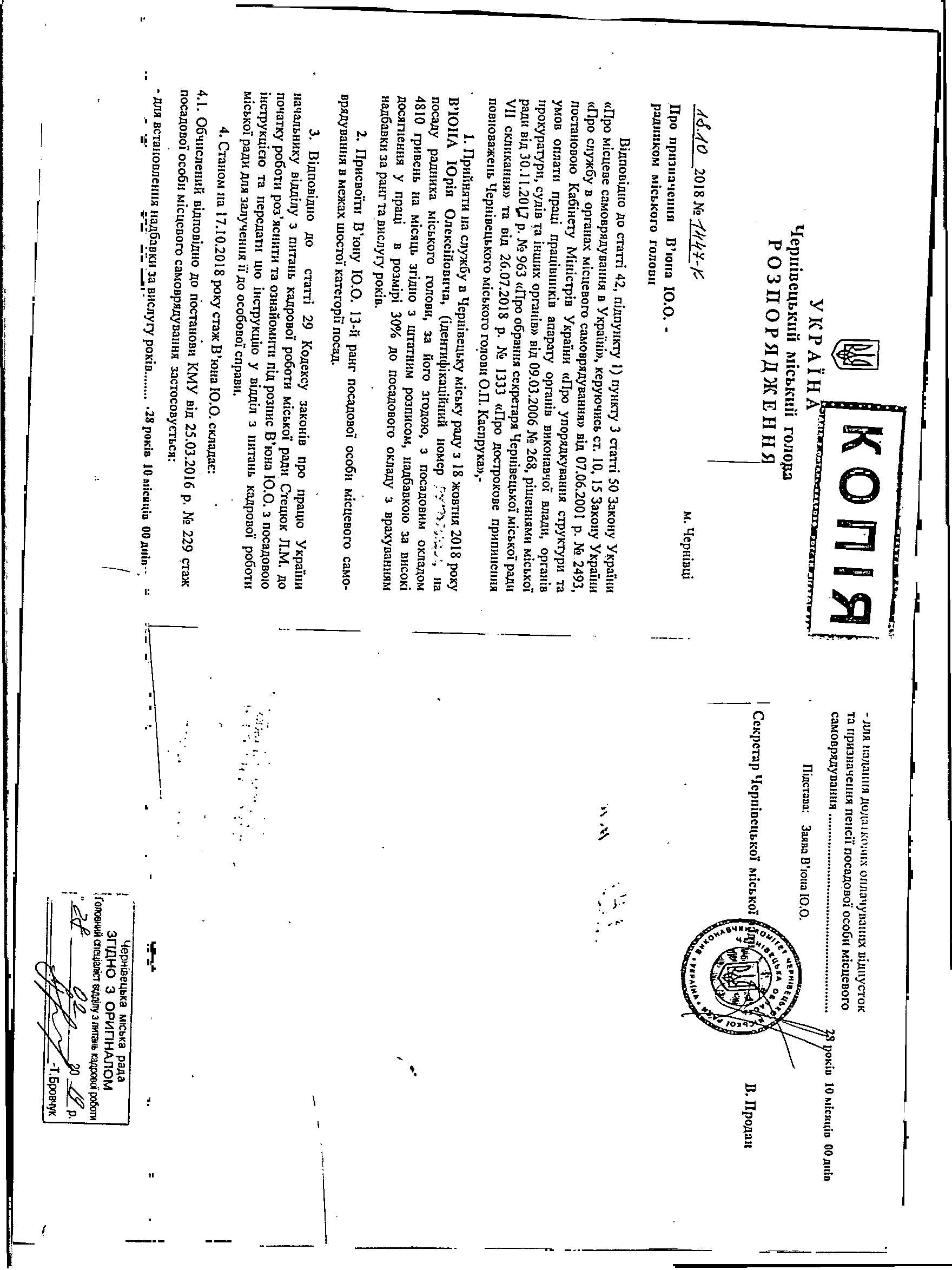 1. Список радників міського голови, що є працівниками Чернівецької міської ради станом на 26.02.2019, їх біографії та копії розпоряджень про призначення радниками