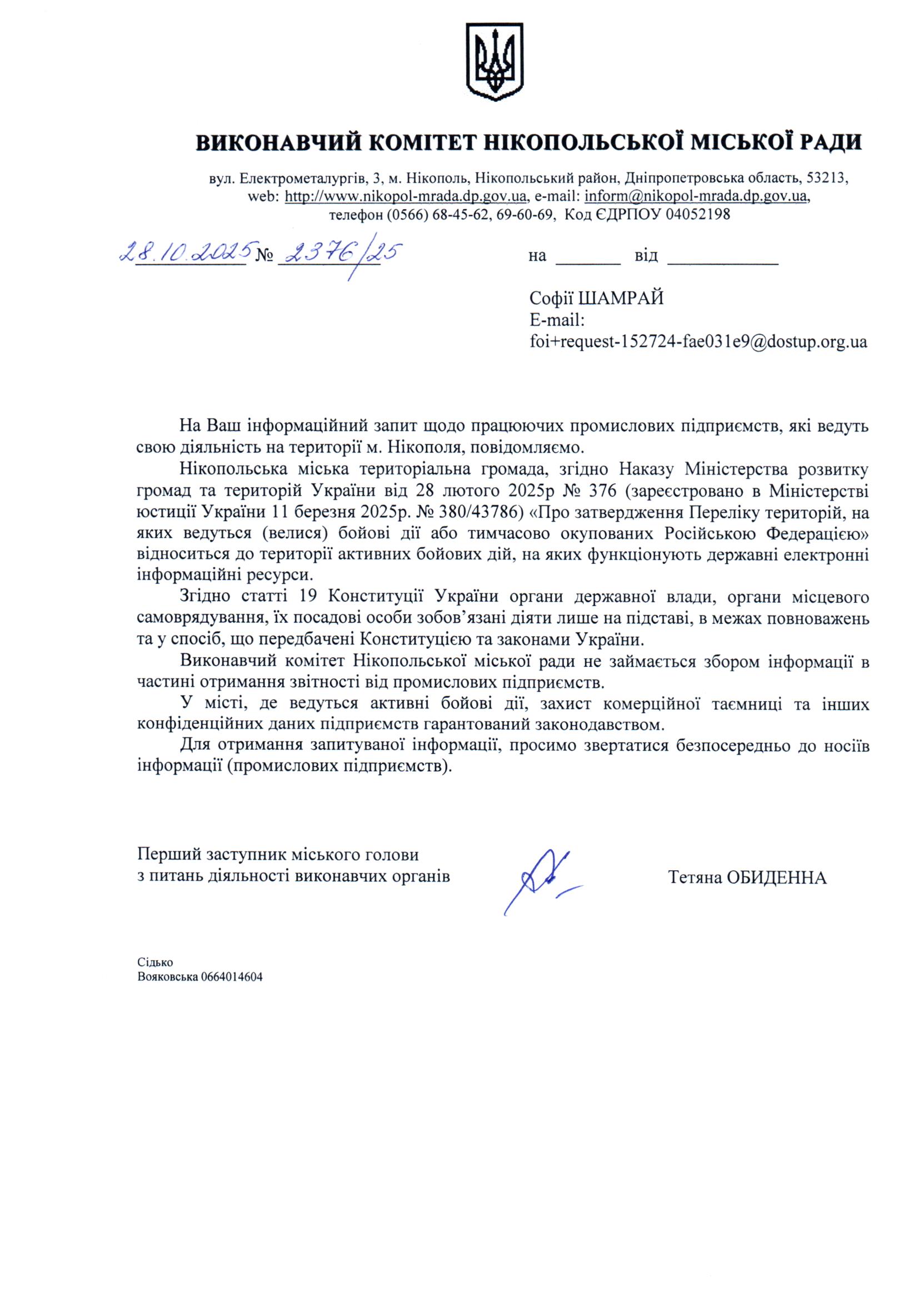 Які промислові підприємства працюють в Нікополі станом на 22 жовтня?