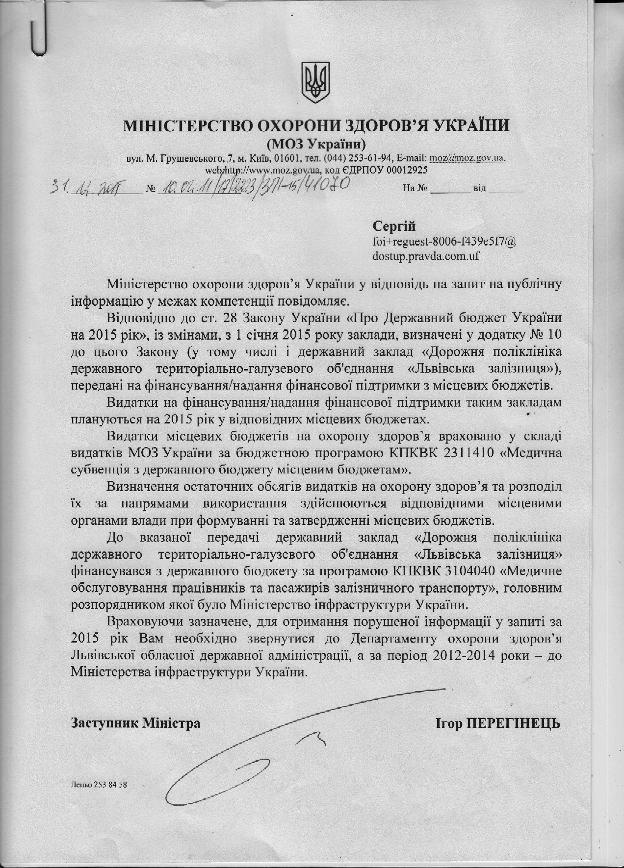 - яка загальна сума коштів виділялась на дану поліклініку з бюджету кожен рік починаючи з 2012р по 2015р?