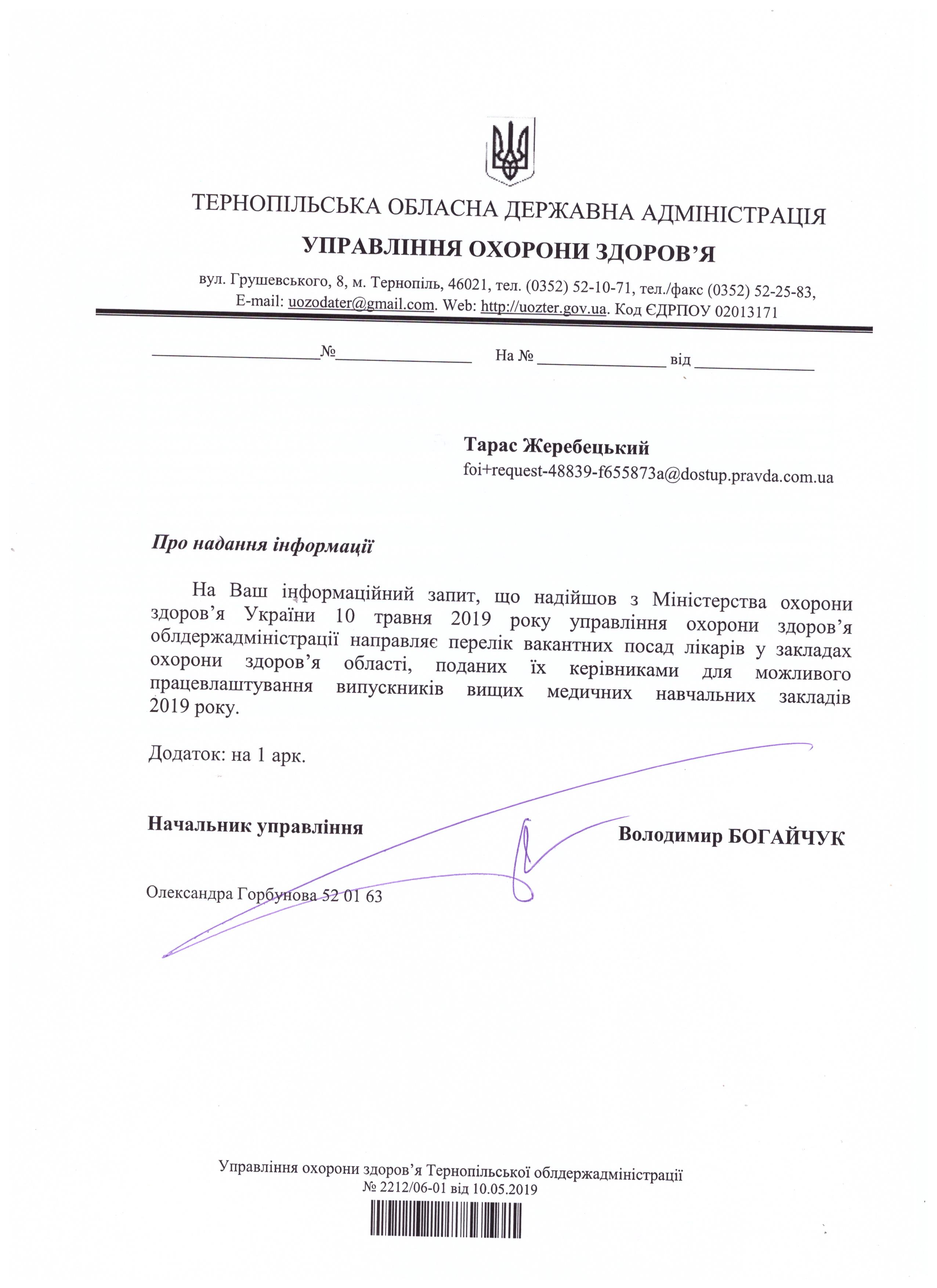 ТЕРНОПІЛЬСЬКОЇ ОБЛДЕРЖАДМІНІСТРАЦІЇ