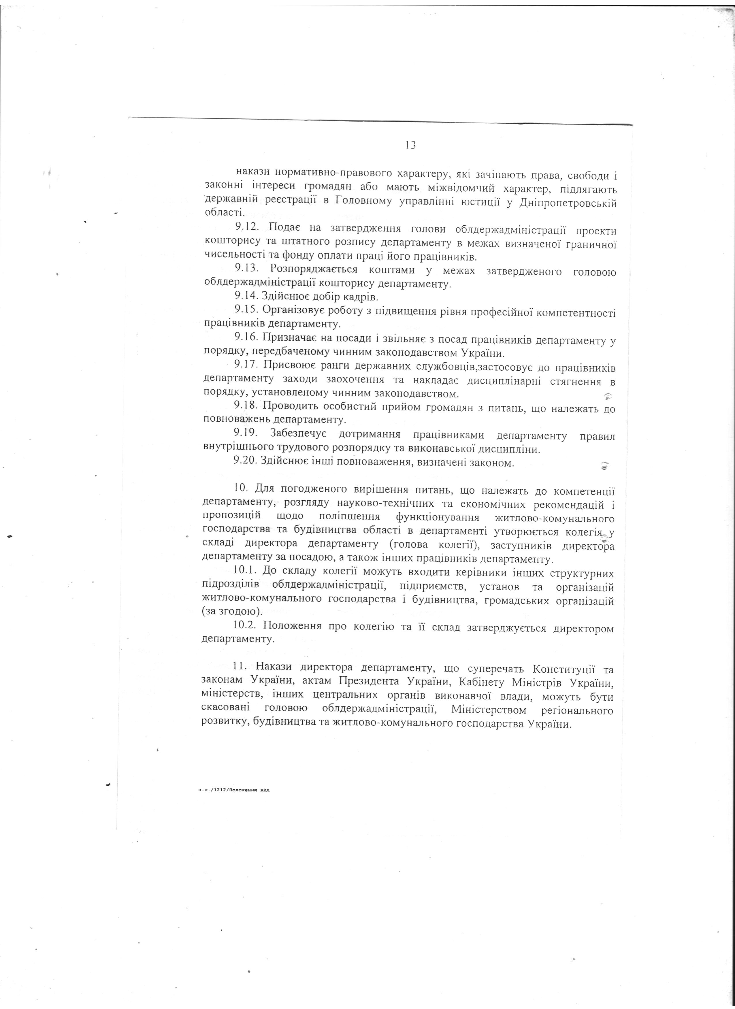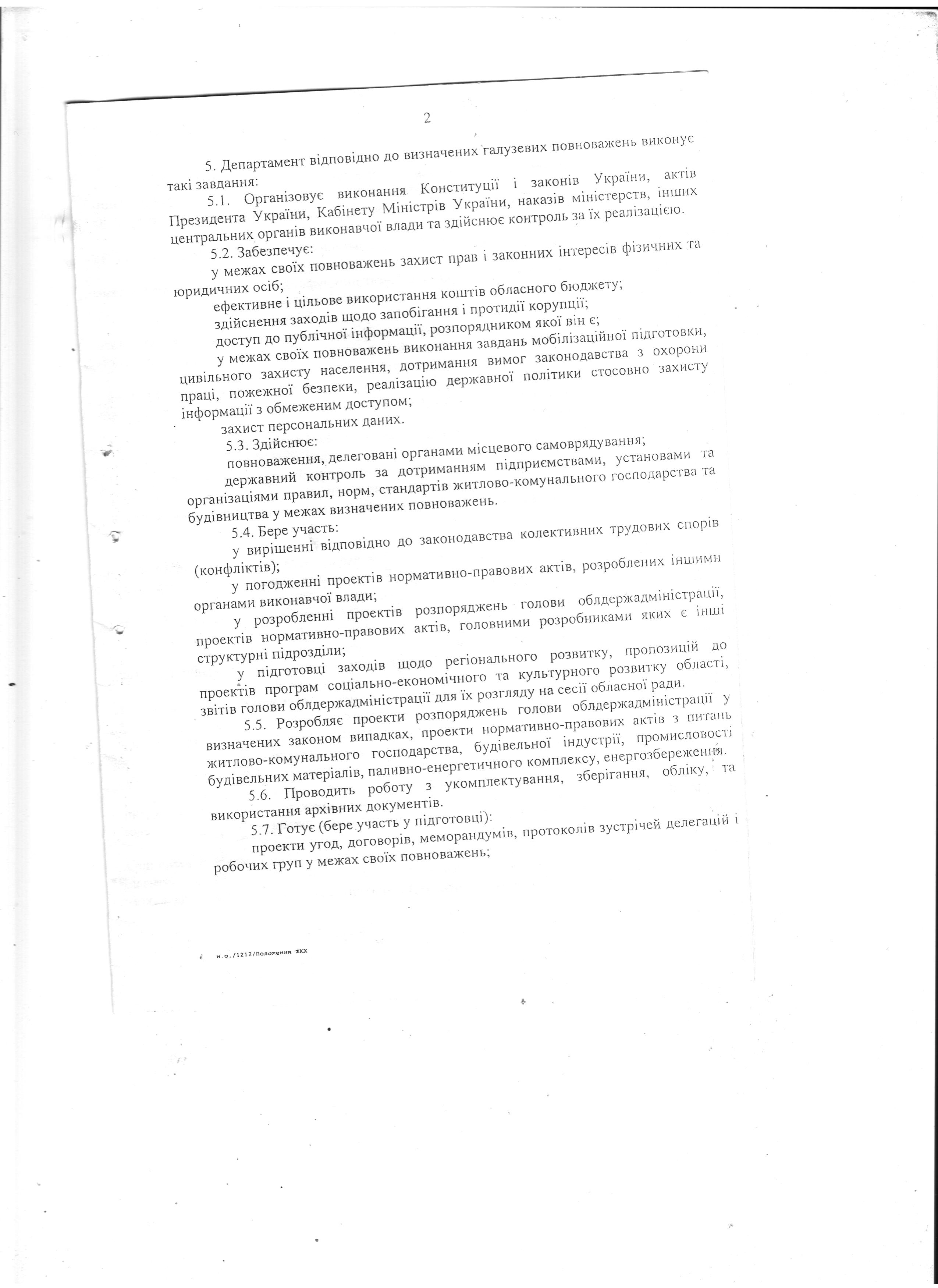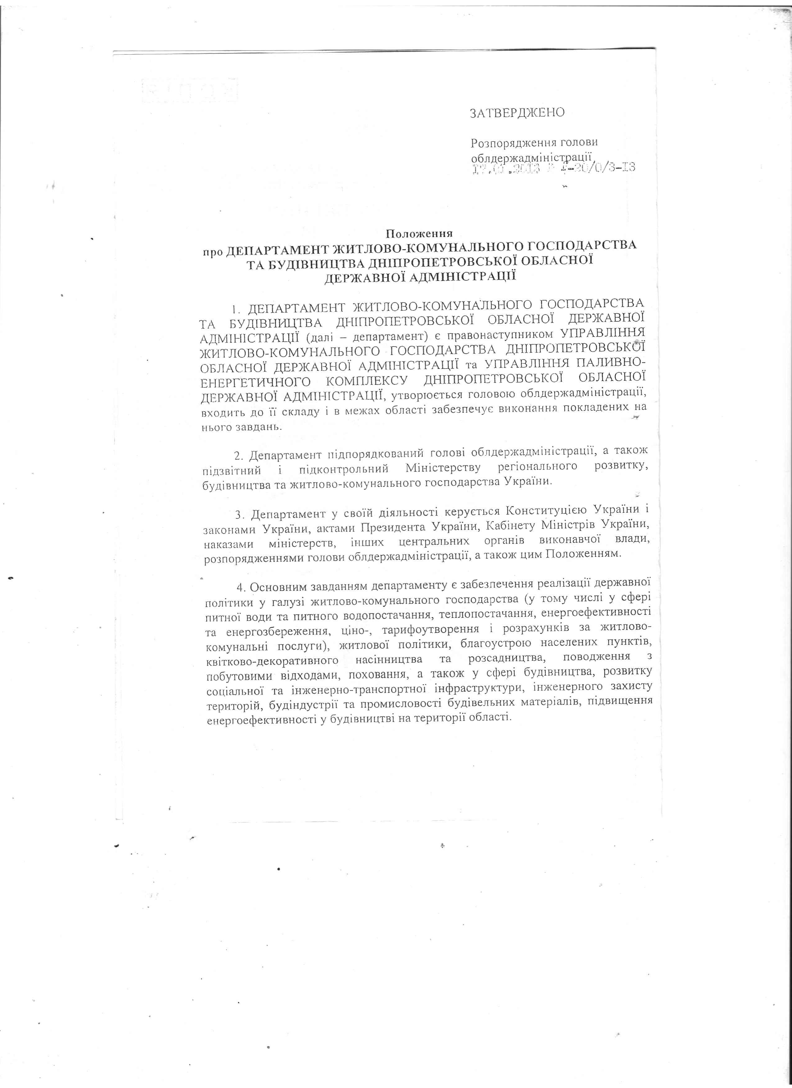 - статут Департамента житлово-комунального господарства та будівництва облдержадміністрації.