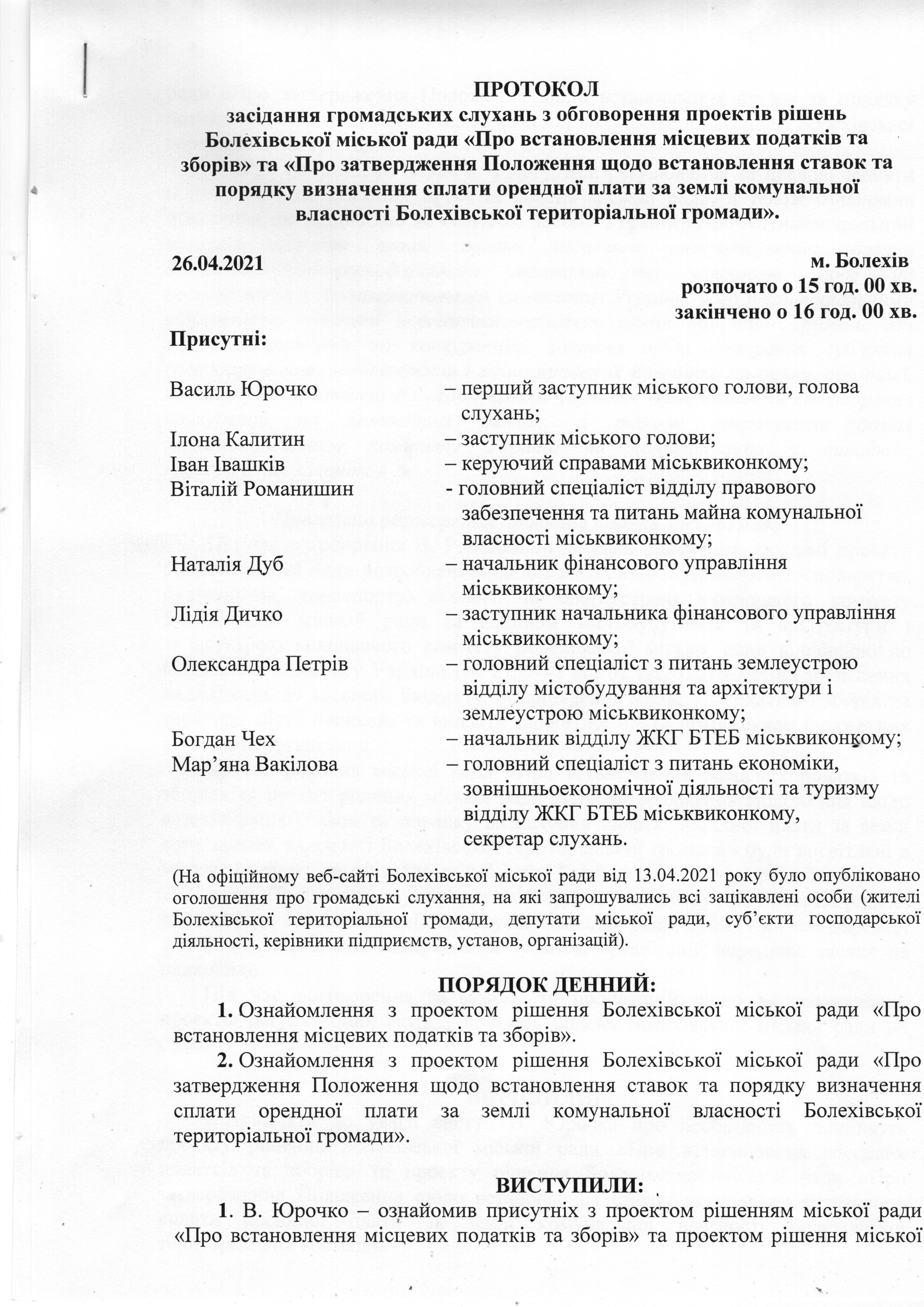 2. Чи проводилися: місцевий референдуум, загальні збори чи громадські слухання жителів територіальної громади м.Болехів в створенні органу місцевого самоврядування «Болехівська міська рада» після прийняття Конституції України 1996р.?