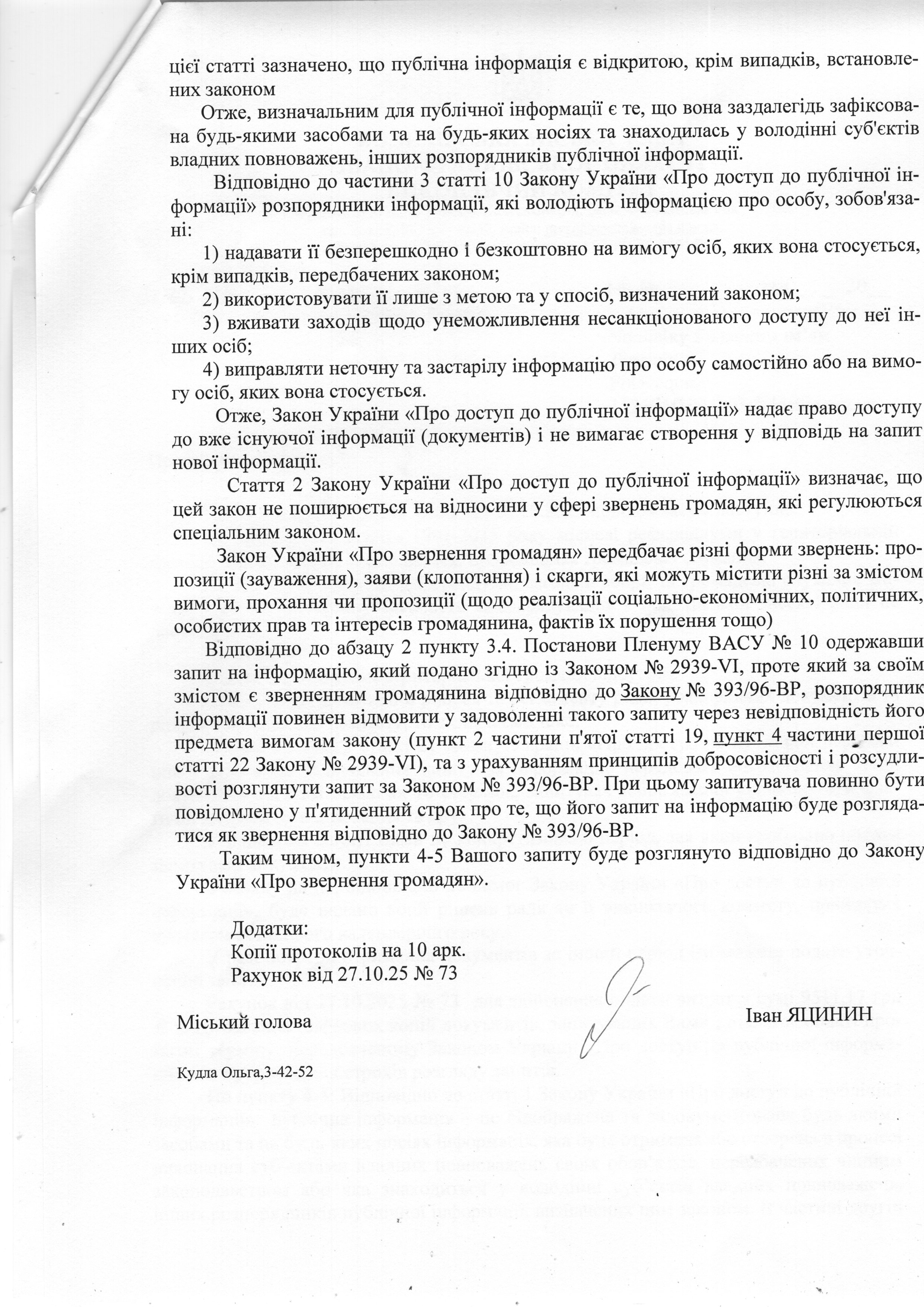 Прошу надати наступну інформацію (наступні завірені належним чином копії документів):