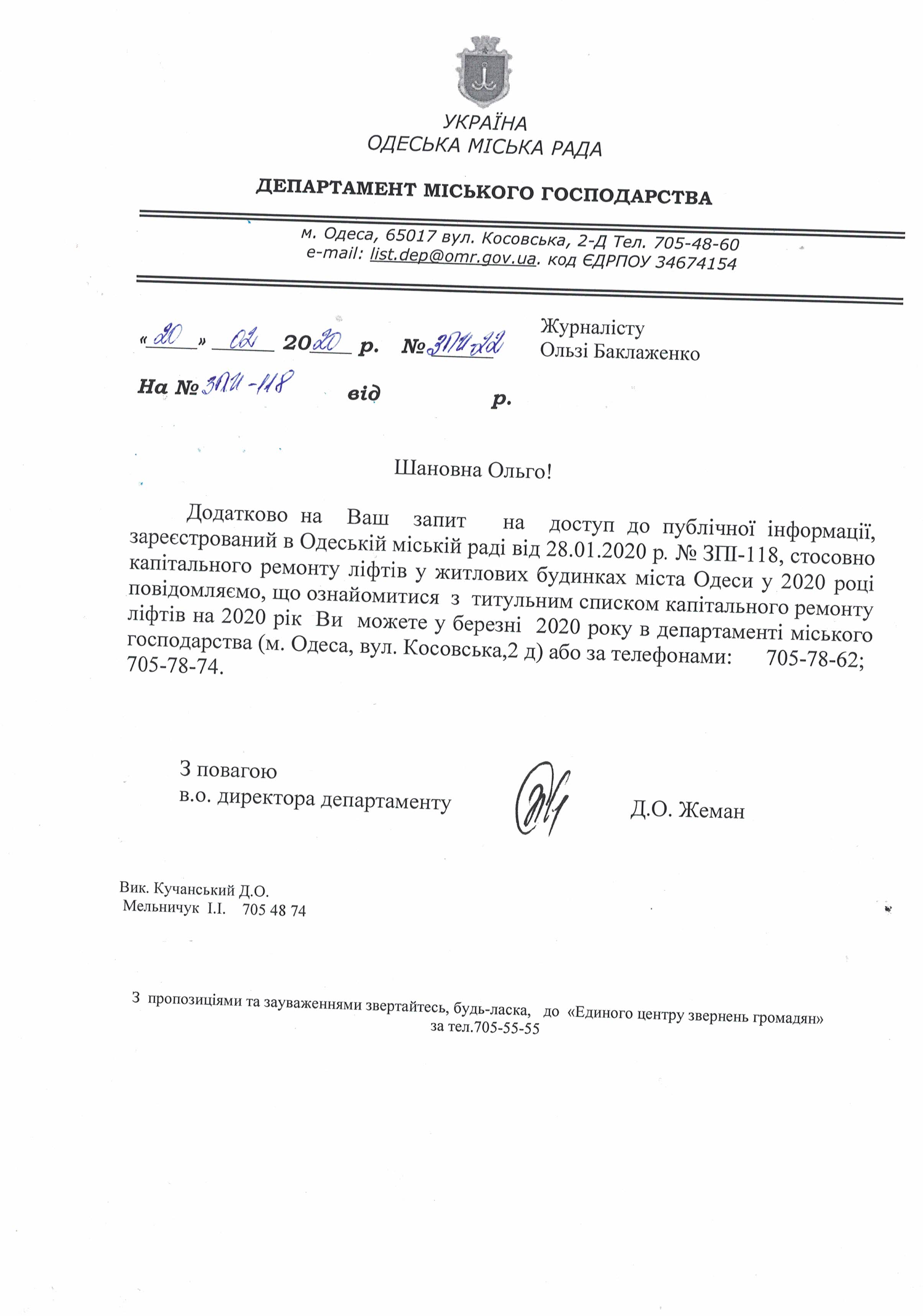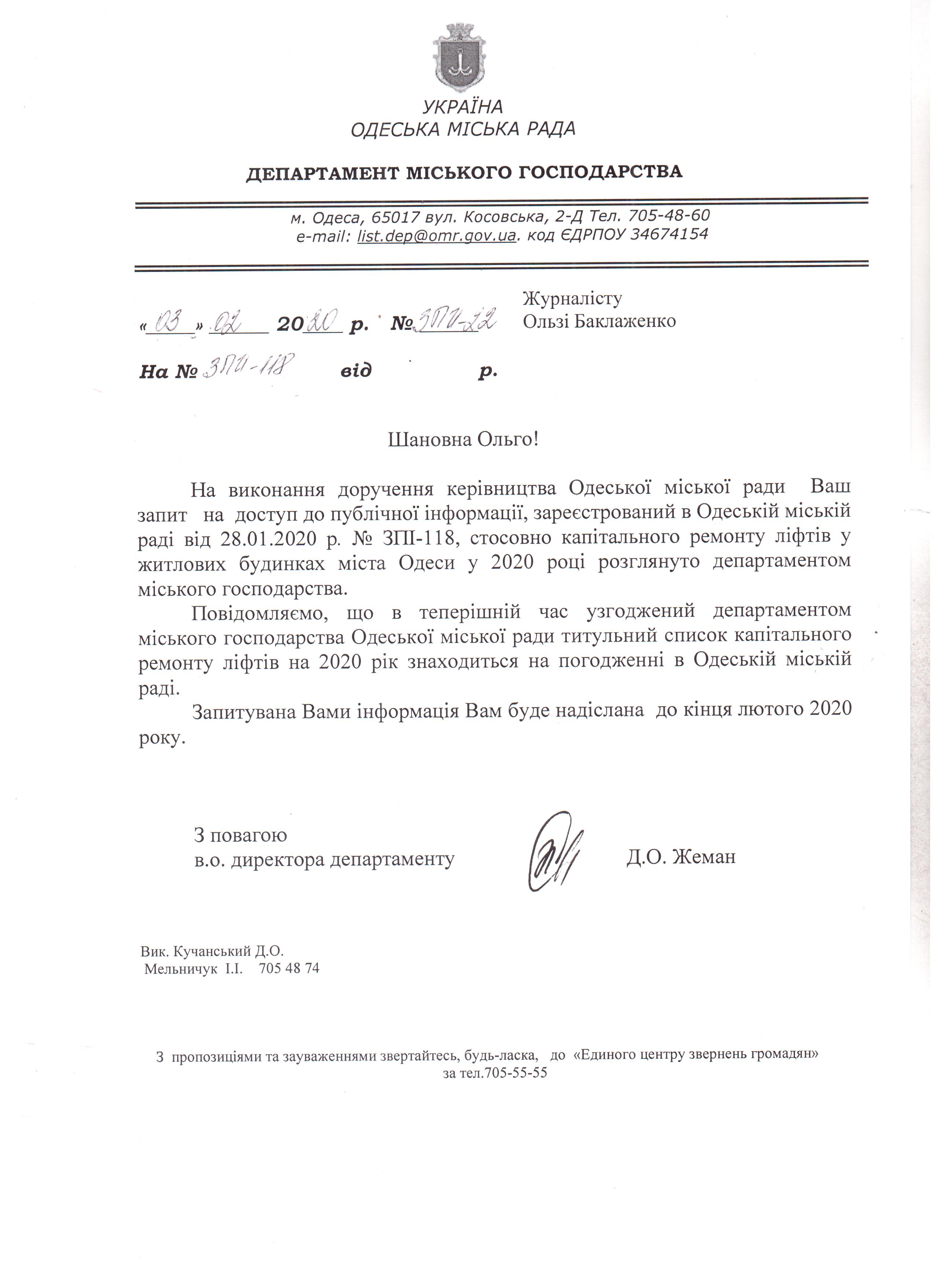 До: Одеська міська рада -