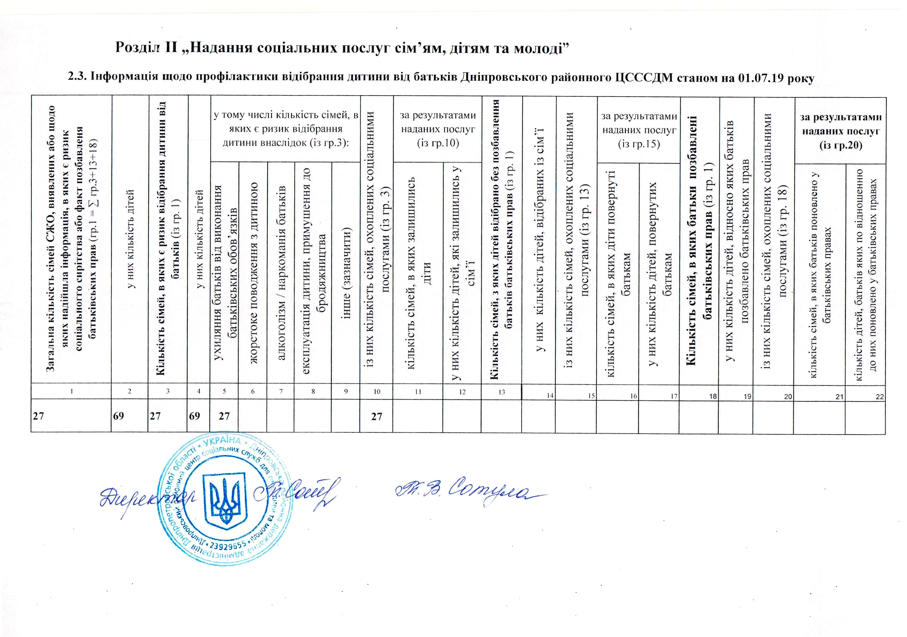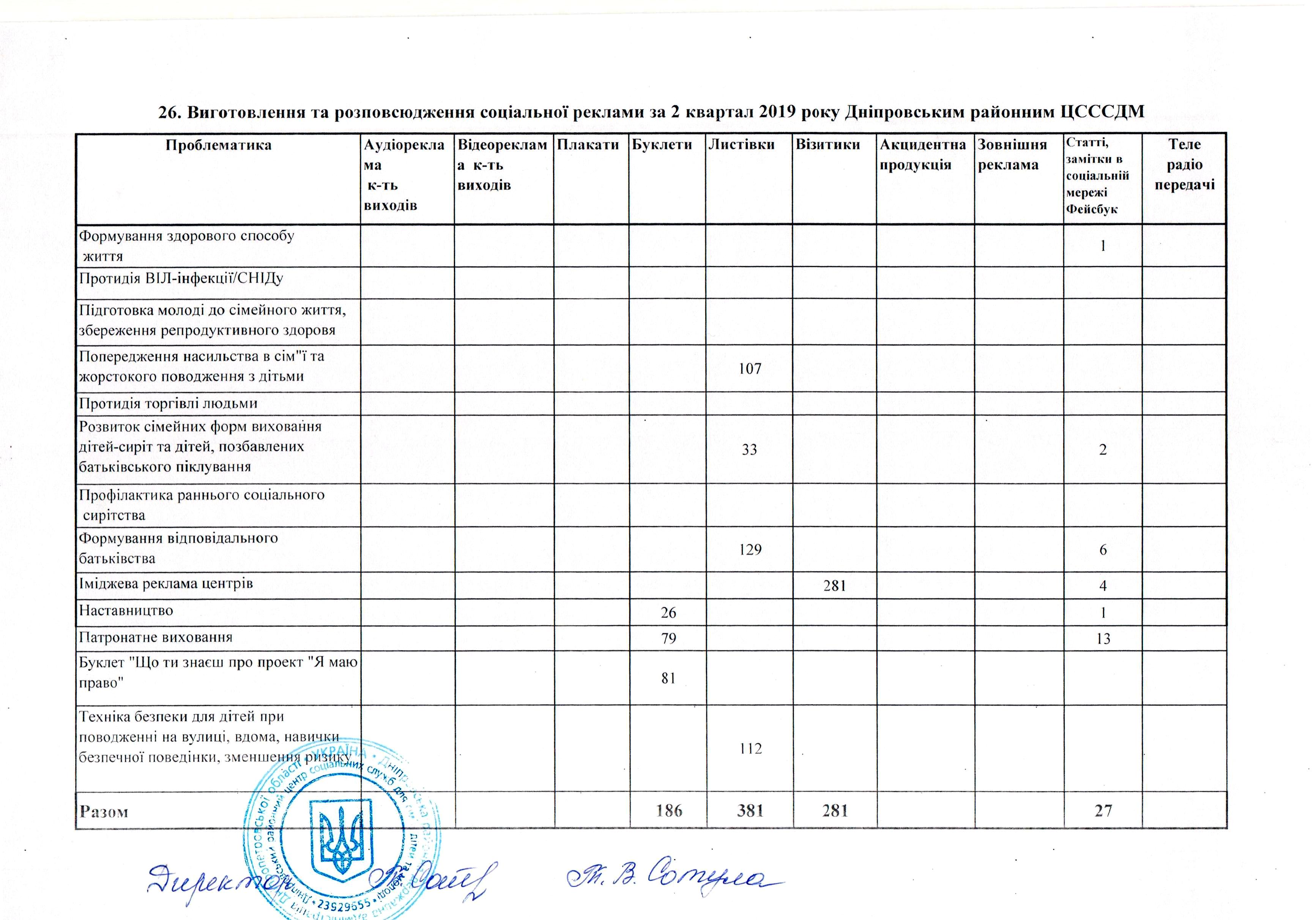 Звіт центру соціальних служб для сім’ї, дітей та молоді за другий квартал 2019 року