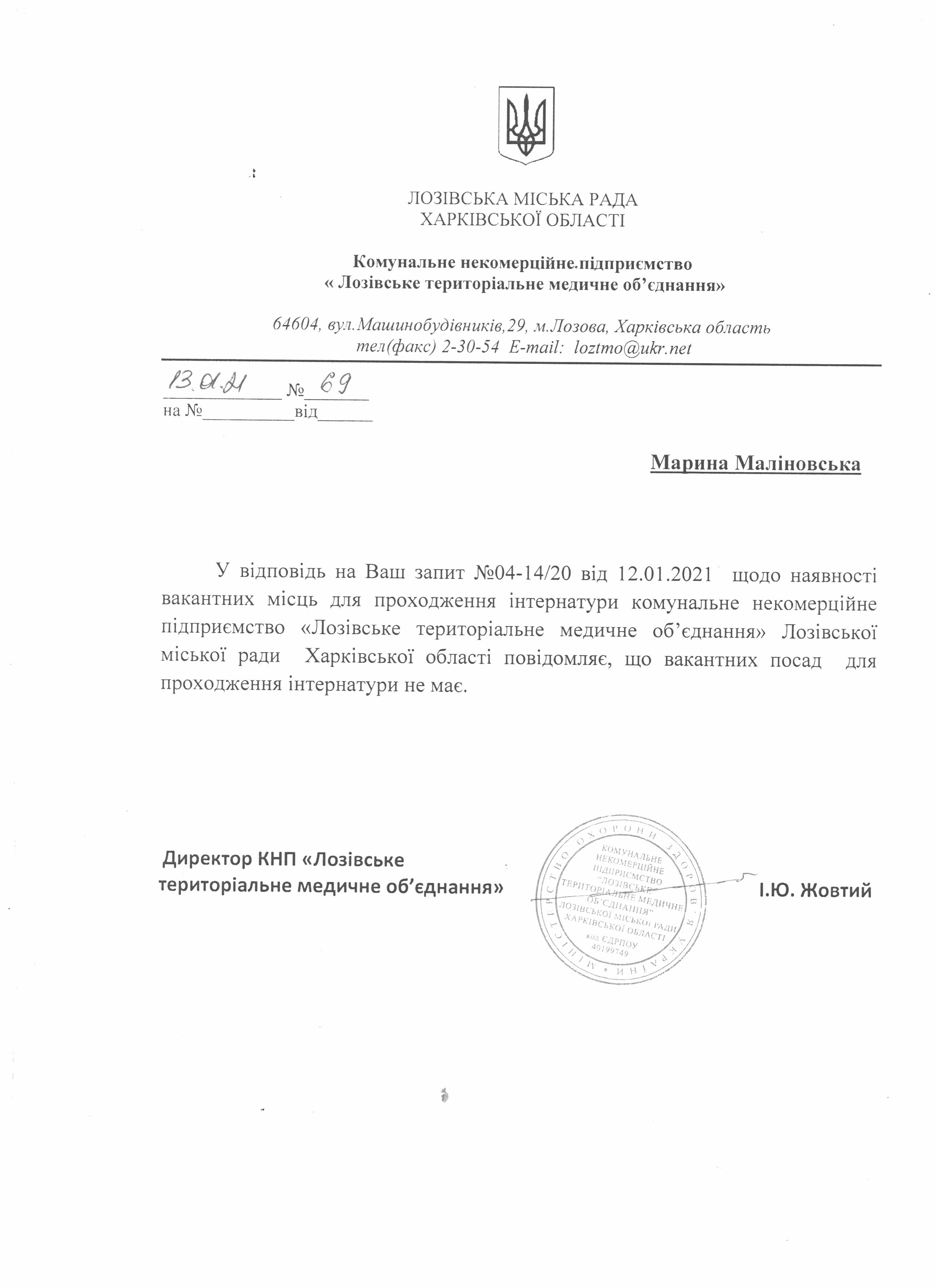 Шановна Марина Маліновська. Адміністрація КП "Чугуївський міський