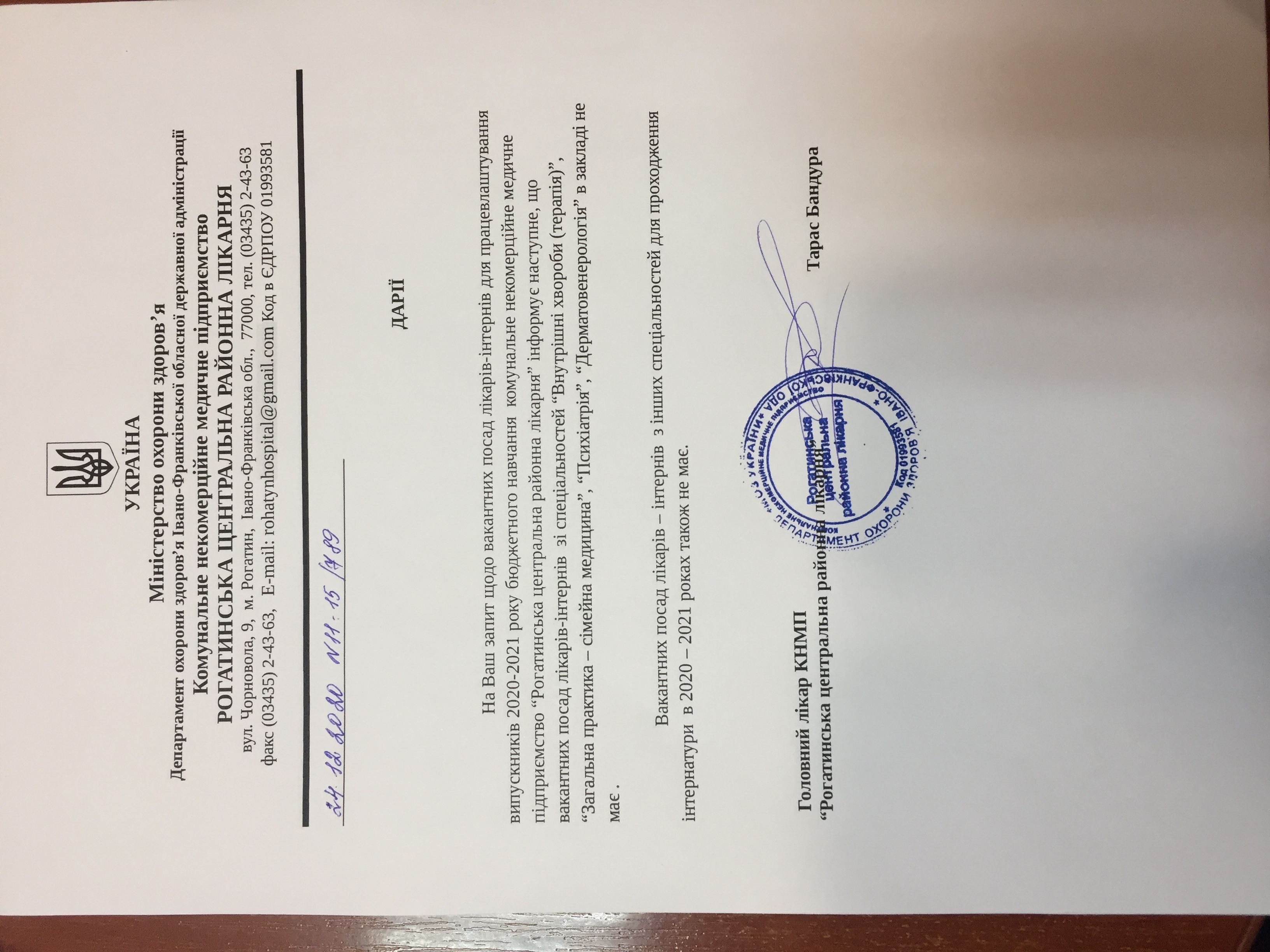 Доводимо до Вашого відома, що в нашому закладі КНП "ІФ ОКЦПД ІФ ОР"