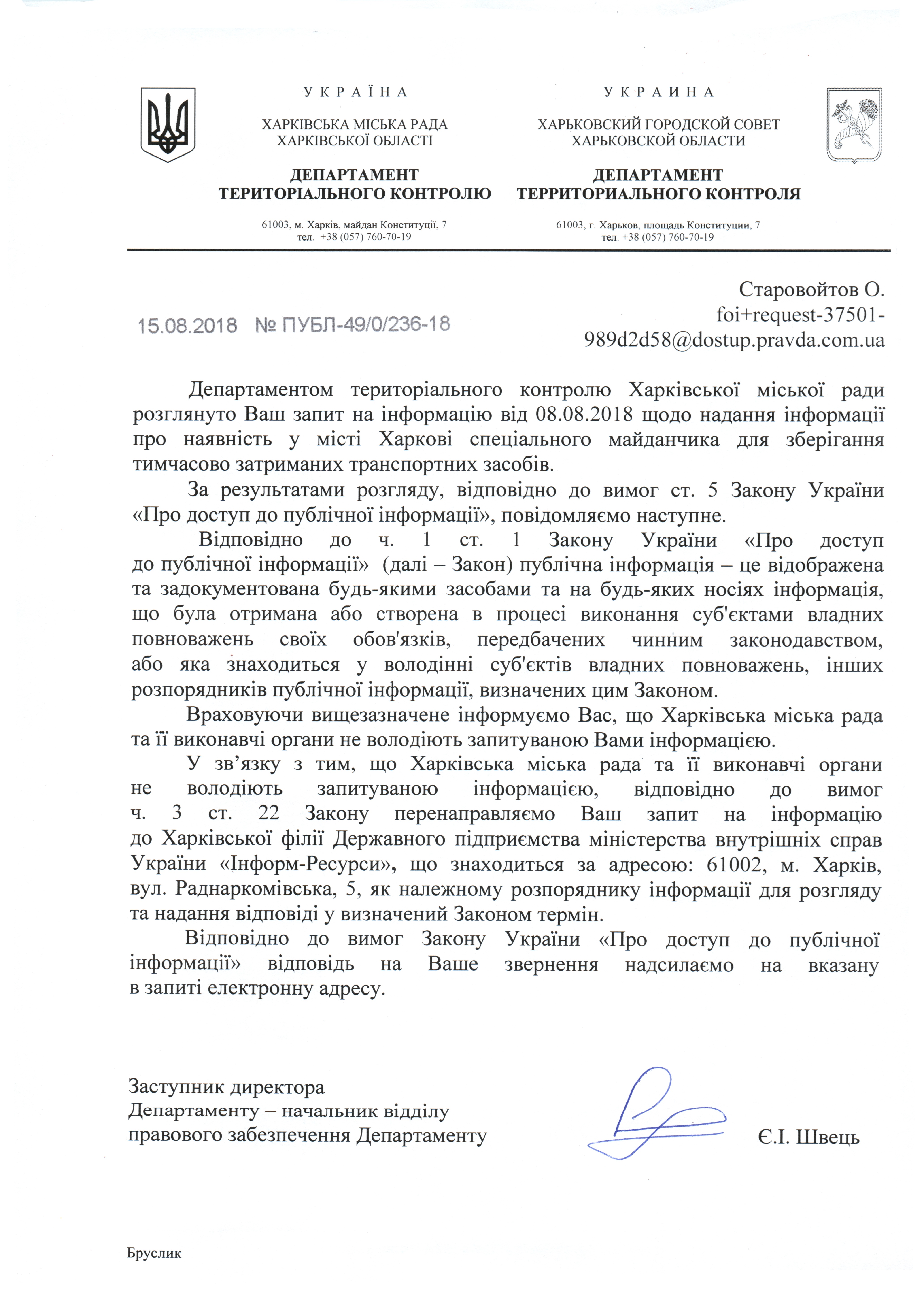 На підставі статей 1, 13, 19, 20 Закону України «Про доступ до публічної інформації» від 13 січня 2011 року, які надають право звертатись із запитами до розпорядників інформації щодо надання публічної інформації, прошу надати наступну інформацію (наступні документи):