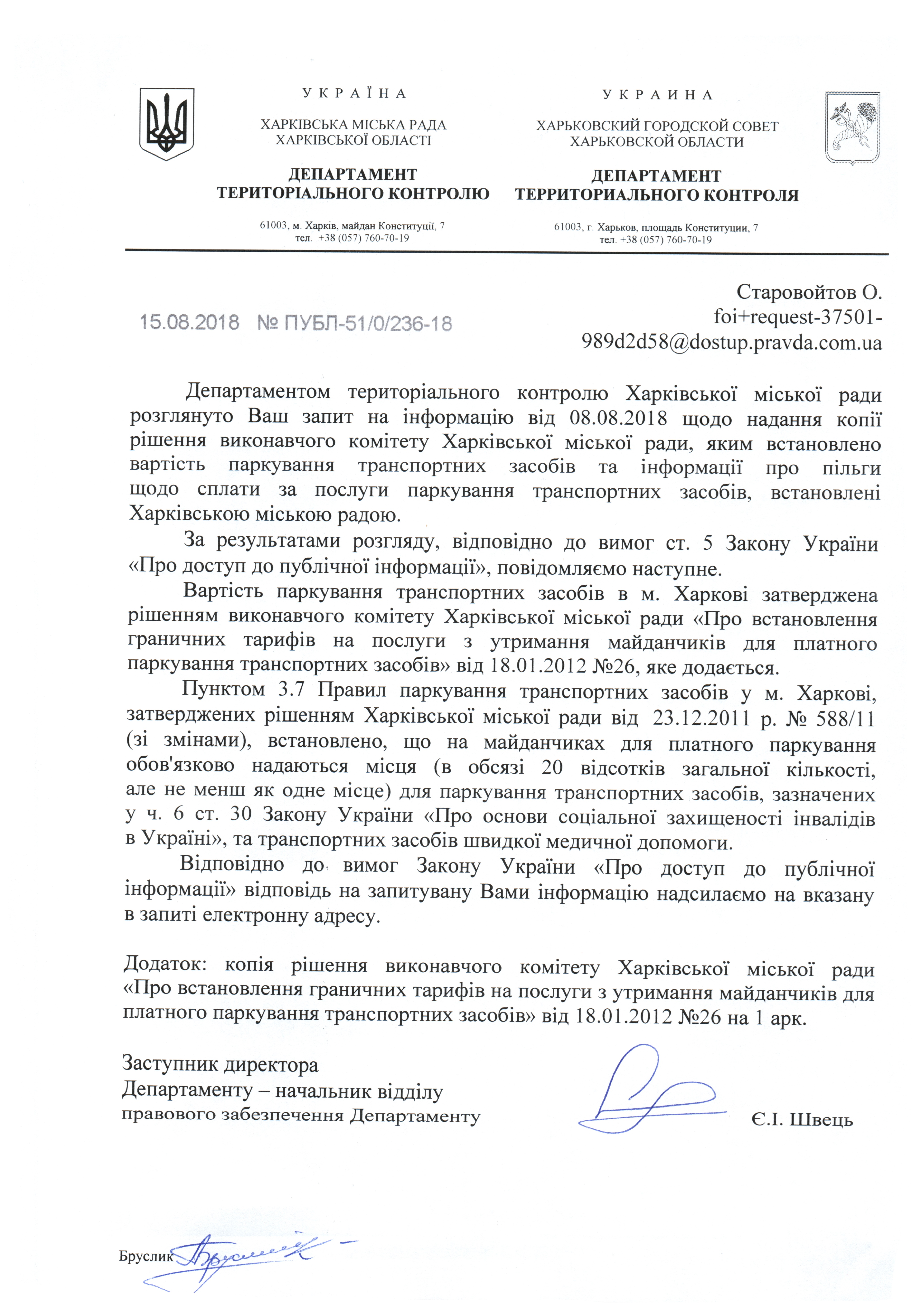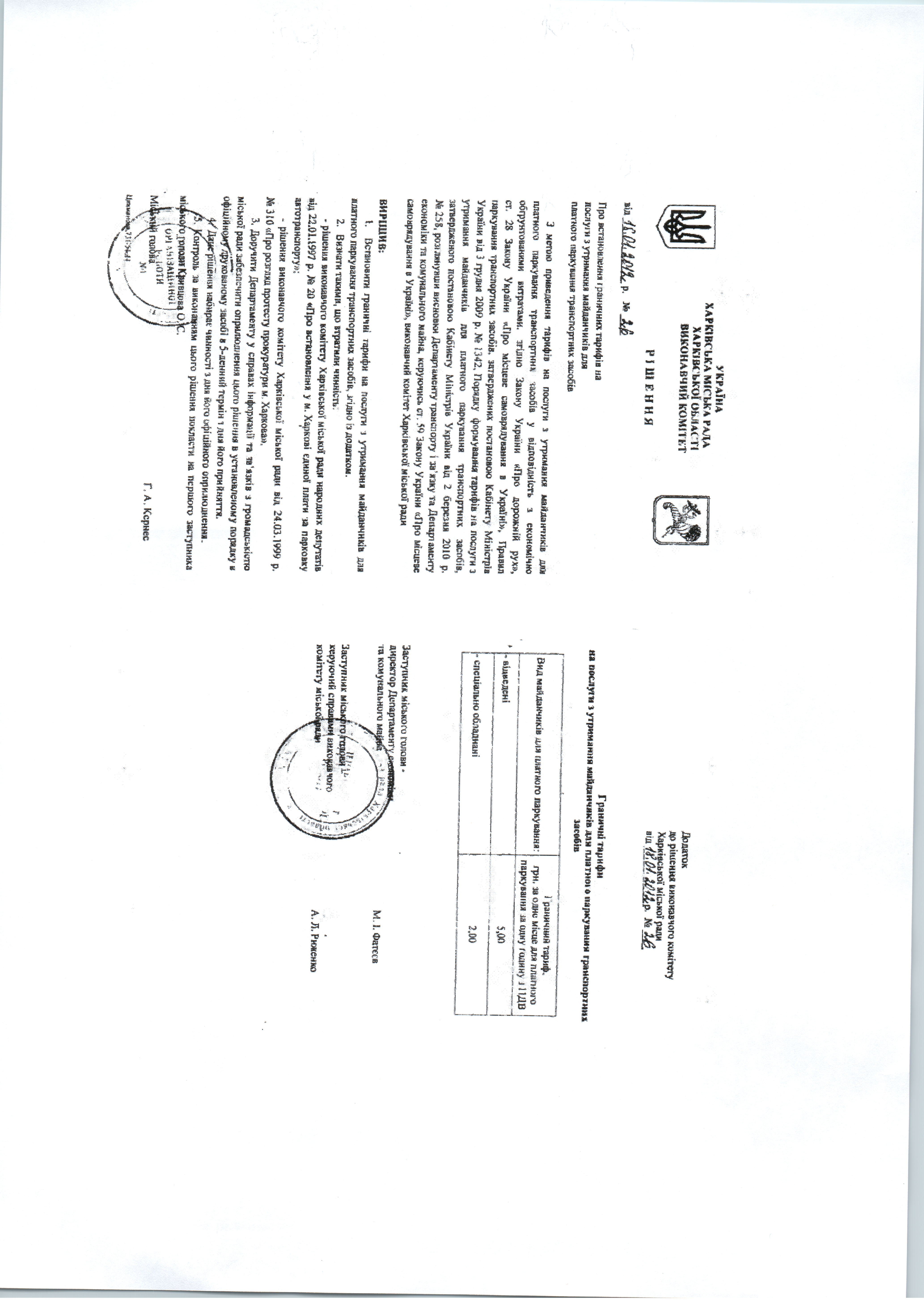 - рішення виконкому Харківської міської ради, яким встановлено вартість паркування транспортних засобів;