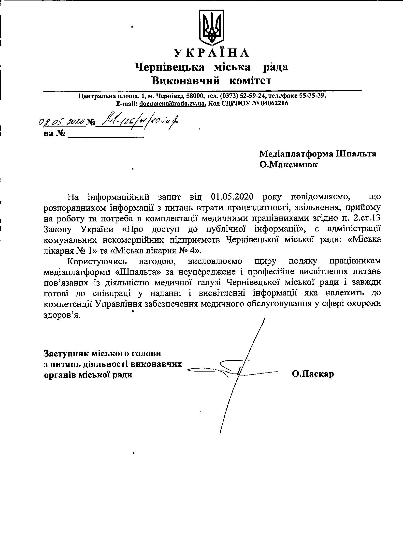 1. Яка кількість медичних працівників втратили працездатність в період з 1 березня по 1 травня 2020 року у Чернівцях (Чернівецька міська лікарня №1, лікарня №4 у Садгорі);
