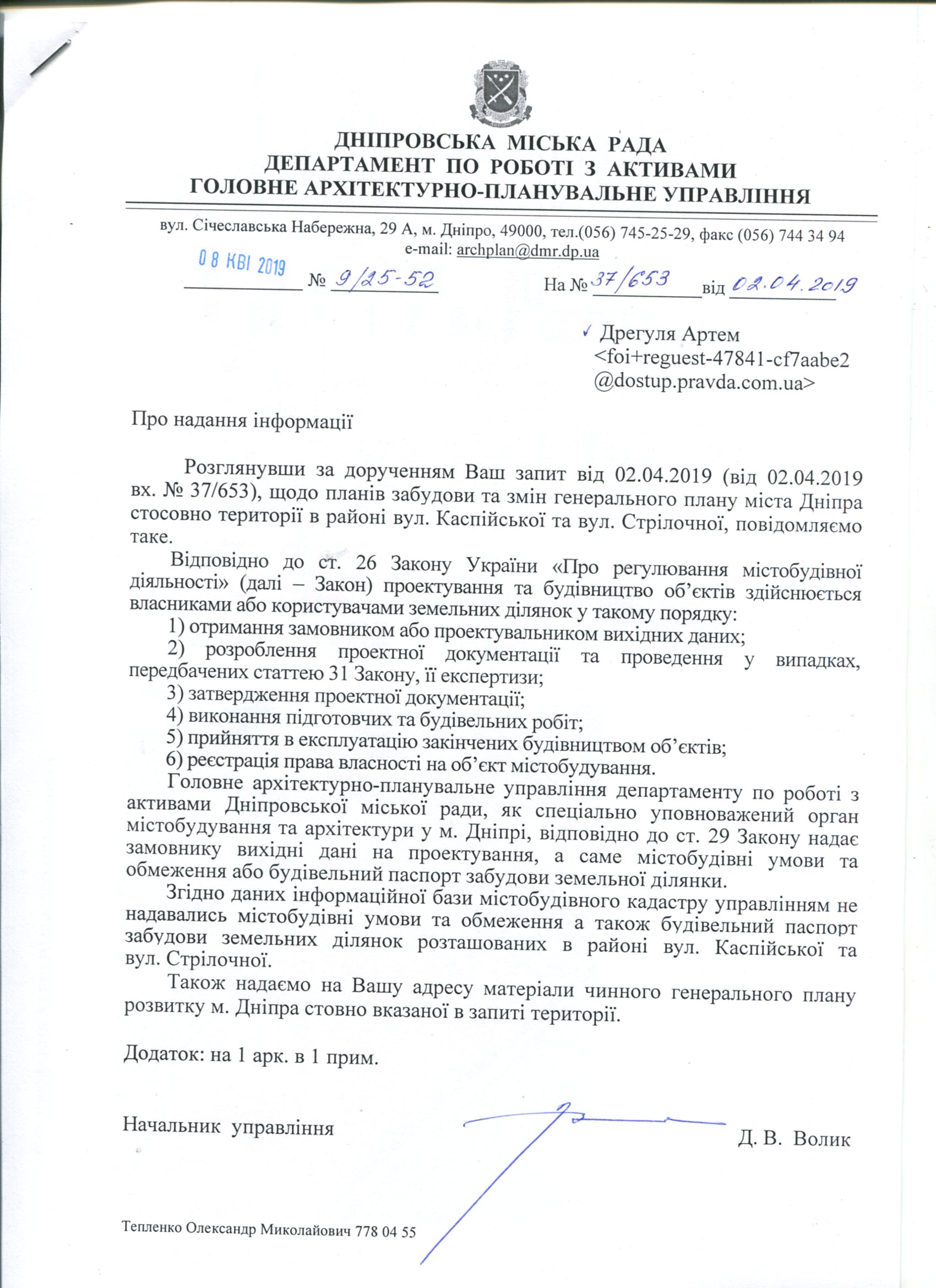 До: Дніпровська міська рада -