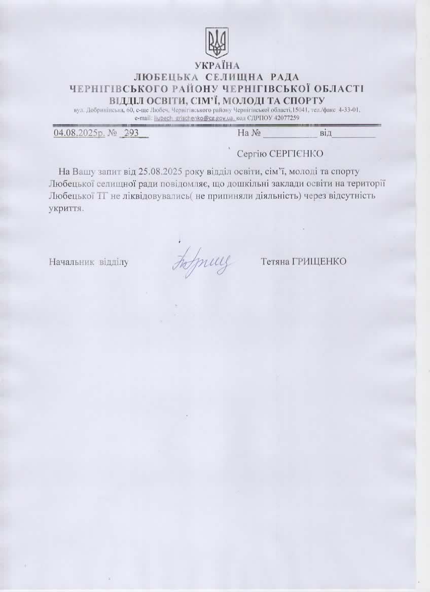 Від кого: "Талалаївська сільська рада Ніжинського району Чернігівської