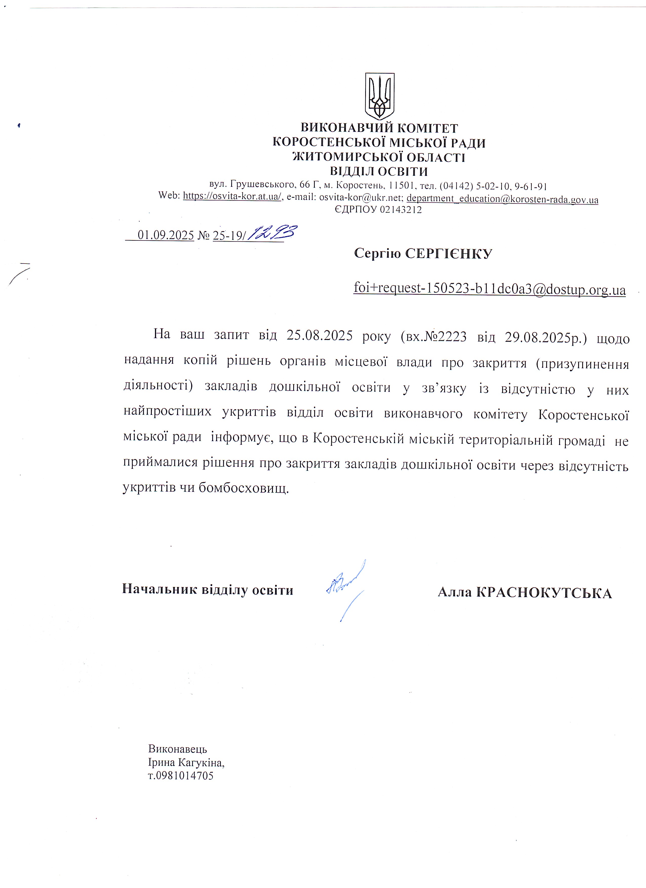 Начальник відділу освіти, культури, сім'ї, молоді та спорту