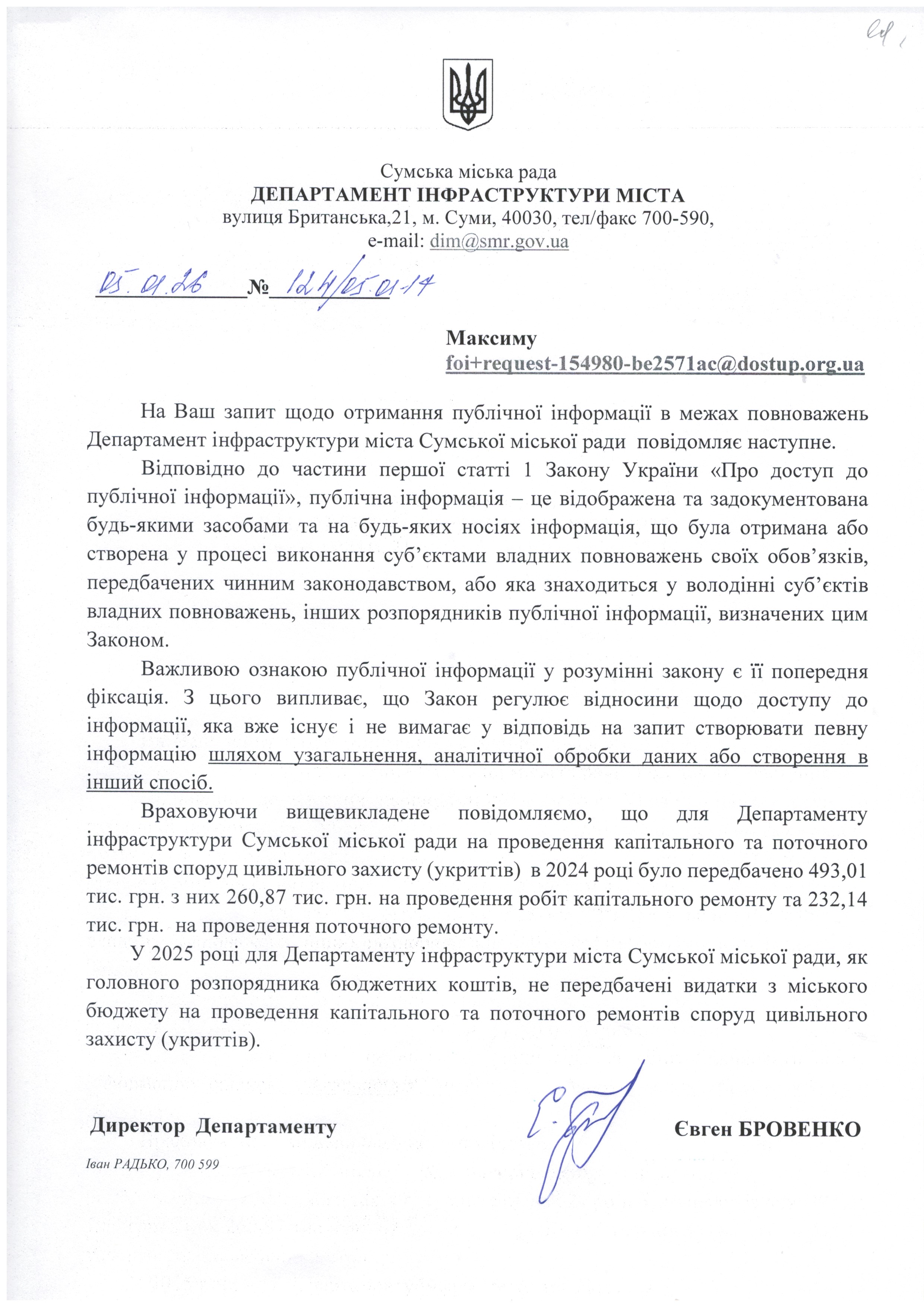 Запит на отримання публічної інформації щодо стану та фінансування укриттів у м. Суми