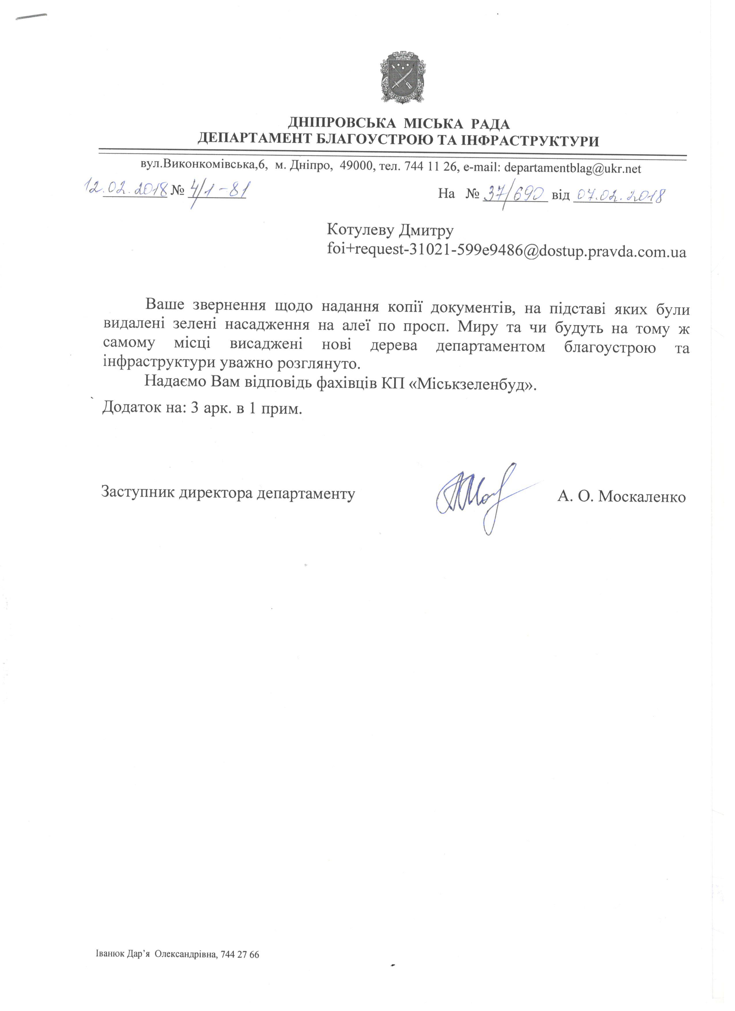 До: Дніпровська міська рада -