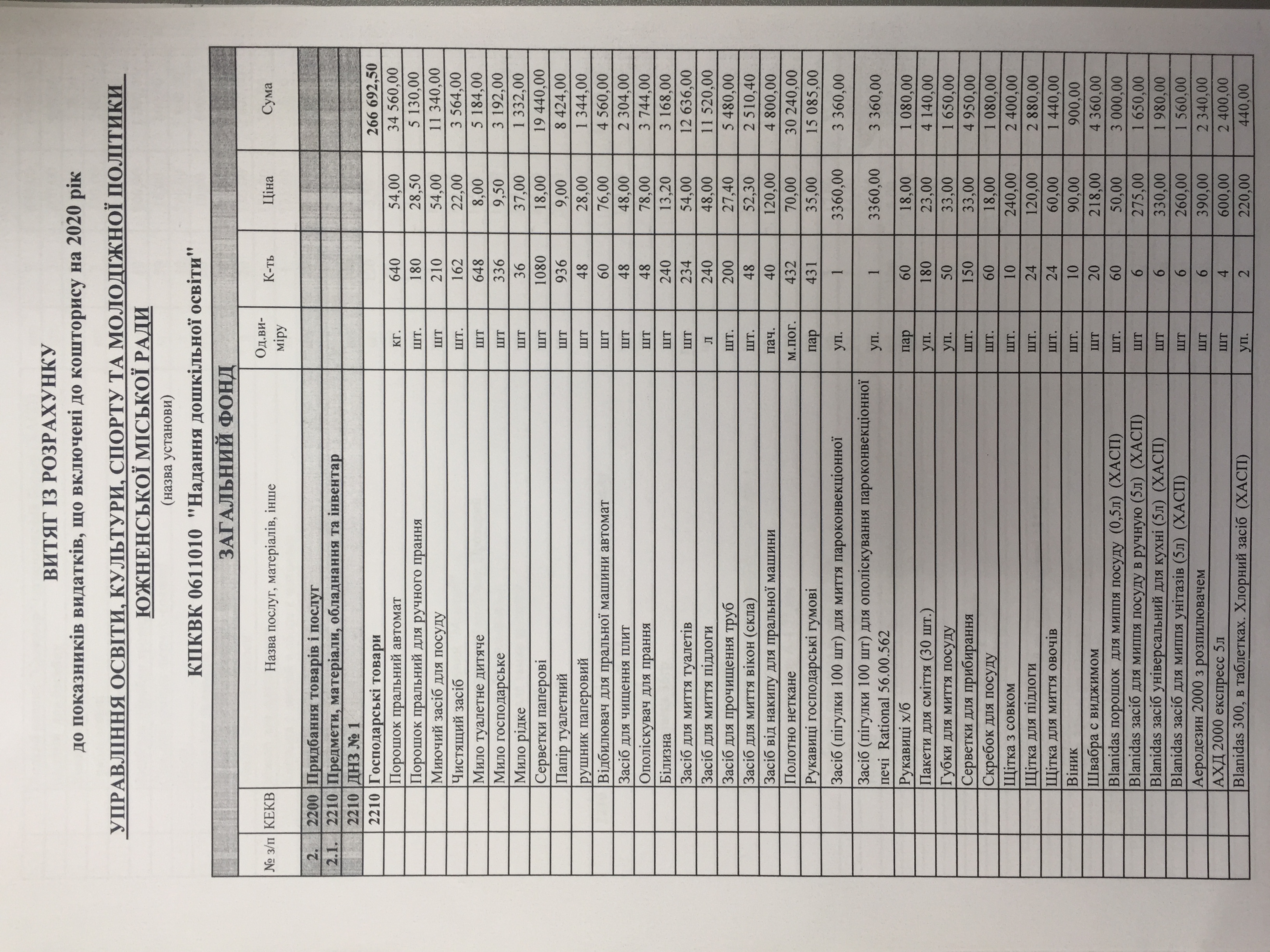 1. Чи забезпечує міський бюджет дитячий садочок 1 необхідною канцелярією вихованців та вихователів, або чи фінансував ці потреби міський бюджет у повному обсязі?